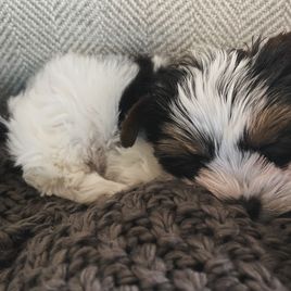 Sincere is a very loving and alert dog. He likes to guard the window and loves rubbies. Being a protector, he is a "Barker" who will alert you when anything moves. He is potty-trained and very good around kids. He is overall a great dog who doesn't require much attention. He loves to hop up on the bed to sleep with you, even when not supposed to, but if you're snoring and wake up, he will be there to greet you with the stare "You're messing up my sleep." He does snore like a human being, if not worse. I wouldn't trade him for the world!