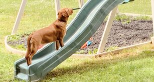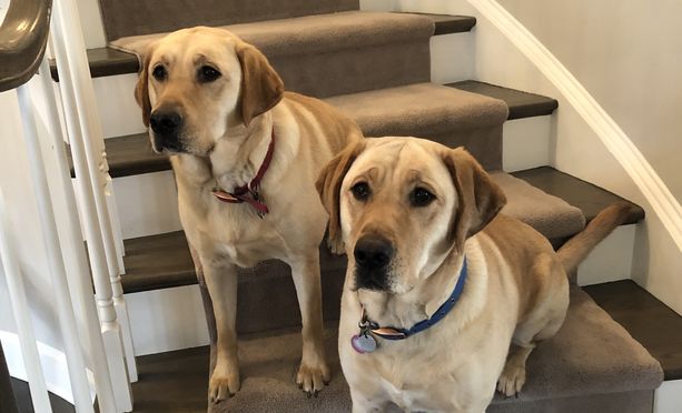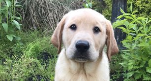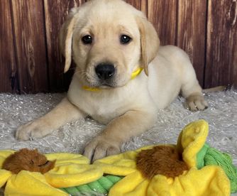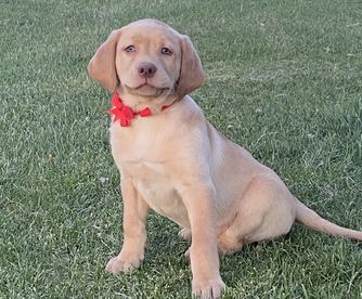 Nesquik is a light yellow American/English cross Labrador Retriever who is of shorter stature similar to English Labs. Nesquik loves to play and as her name indicates, she is "quick." She loves to run and play with her toys, whether by herself or with other animals or people. Her favorite food is currently bananas, bananas, and more bananas.