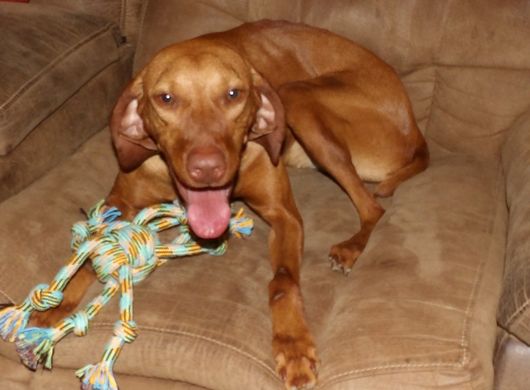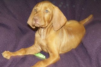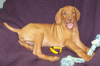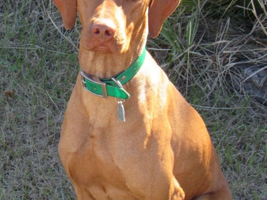 Rufus is an energetic, loving fellow. He has a nice dark coat highlighted with the typical Vizsla golden marking on neck and shoulder areas.