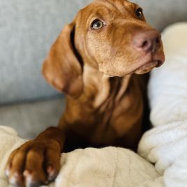 Ruby is a female Vizsla. Carefully selected as a great representative of her breed, Michael decided to make her part of their program. Michael has passed Good Dog’s screening process, which involved a review of their breeding practices, environment, and the mental and physical health of their dogs.