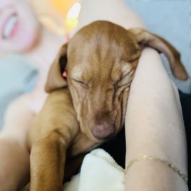 Michael was unbelievably helpful in my puppy finding journey! His response time on any communication was always so quick, he readily sent photo and video updates of the litter, and he was extremely flexible and accommodating when I had to change our scheduled pick up date several times due to a family emergency that occurred. He even put me in contact with a reputable dog sitter/ trainer in the city I live who has experience with Vizslas! I've had Ruby for a week now and she's been the perfect addition to our little family. So grateful for my experience with Michael and Roz Vizslas and for the ease of using Good Dog as our medium. After months of research and preparation, I could not be happier to finally have Ruby in our home!
