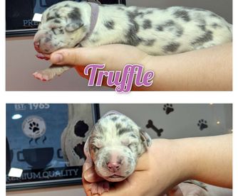 Puppy prices include a $500 non-refundable deposit and between $1,300 - $1,500 final payment, before taxes & fees.