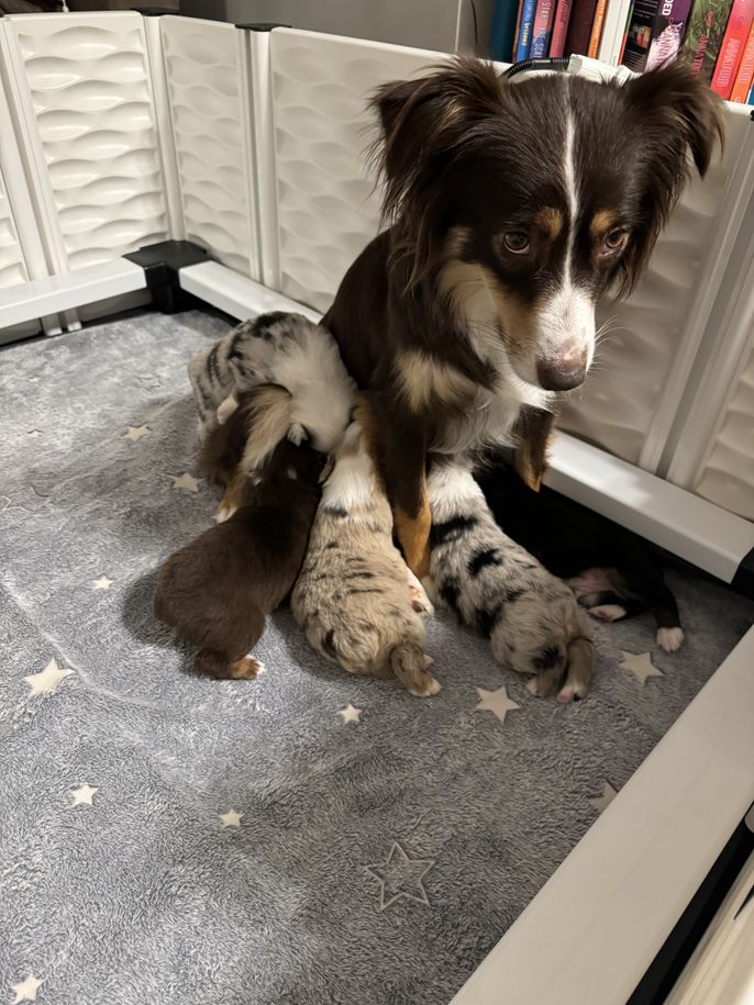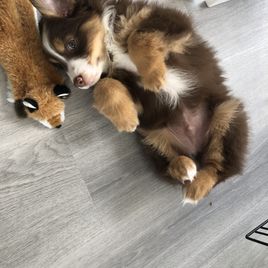 Dana and Tommy are really responsible breeders and amazing people. They truly care about their mini Aussies and treat them like family. It’s been two weeks since we brought Marlowe (our red tricolor mini Aussie) home and we still keep in touch. They are super responsive and helpful with any questions we have as first-time dog owners. I did a lot of research and searching on Good Dog and AKC’s website to find knowledgeable breeders who answered all my questions, including how the litter was raised, the puppy parents’ genetic background and personalities, and the environment that the puppies live in. R&R Aussies are AKC certified, begin sensory, neurological and social stimulation with their puppies early on and really help us understand what it means to be responsible owners. They also arranged to meet us halfway for pickup and made the process really easy. I would recommend them to anyone who is looking to get a mini Aussie who is as cute, smart and sometimes goofy as Marlowe is. We are thrilled to have him join our family and couldn't be happier :)