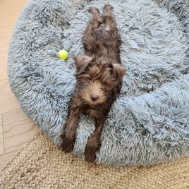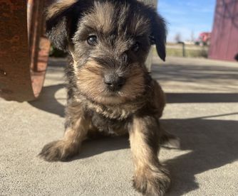I'm Raven E., the breeder behind RR Schnoodles located in Lathrop, MO. My love for Schnoodles all started when I was 10 and got the most precious gift that I will ever receive, Ashley. Ashley was a beautiful, rambunctious, sweet, loving puppy who loved playing fetch and cuddling. Ashley’s love for attention and playfulness made her the perfect companion. As she aged she went from an energetic puppy to calm, playful adult. She was there to greet me every day after elementary school all the way through graduating college. She got along well with all animals that crossed her path (dogs, cats, chickens, goats, pigs, horses, and who knows what else). She was incredibly smart. The old saying, “you can’t teach an old dog new tricks” did not apply to her, considering she learned most of her tricks when she was over 10. She was incredibly active and very sturdy. Her favorite past time in her old age was to go golfing and to chase squirrels. Ashley went everywhere with me, she loved going for car rides and getting to see new things. Anyone who met her instantly fell in love with her infectious personality. She was my trusty side kick for 13 ½ years and is irreplaceable.