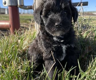 Olive is a black and white ACA registered miniature schnauzer born July 2021. She is a sister of Kiwi. Olive has the most carefree personality! She loves to run and help with chores on the farm. She is spunky and fun! She is a great companion and would do anything to please her owner!