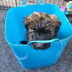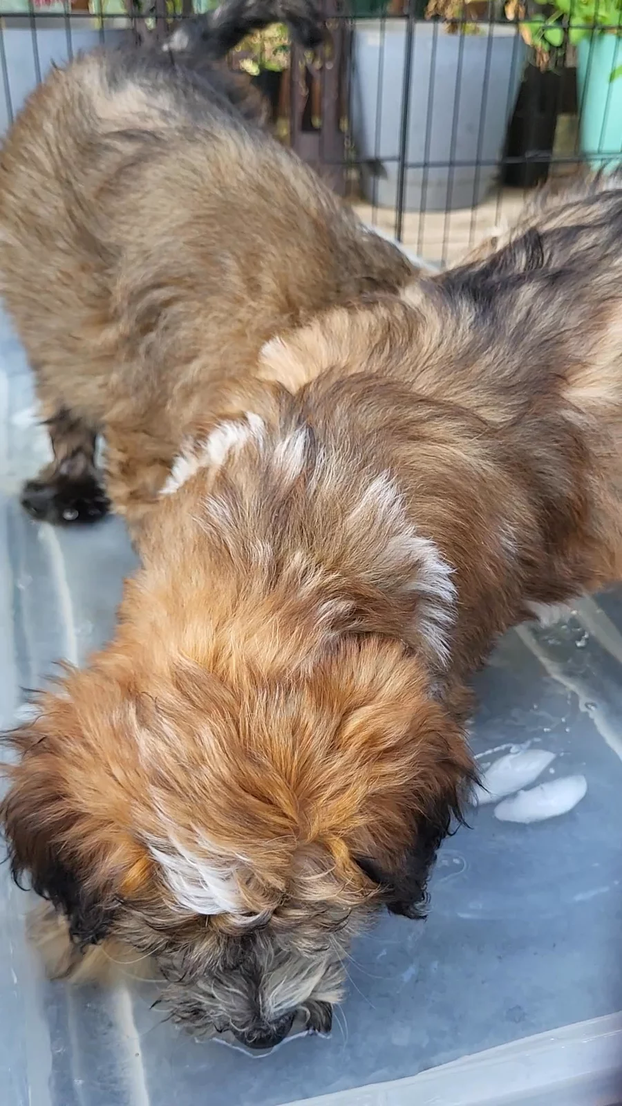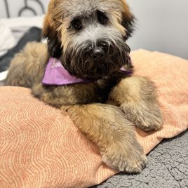 Ruby is a sweet, caring mama. She loves her babies and loves Rex. She's a daddy's girl through and through. She loves to go for walks, saying hi to the neighbors, protecting Rex, and protecting the house. She also loves water and will play in any water you let her and swim laps in the pool. She is 100% Soft Coated Wheaten terrier and completely non shedding. Her coat has a beautiful golden hue and grows into gorgeous waves as it grows out.