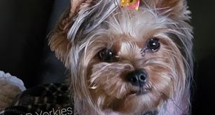 Our three adults are AKC traditional Yorkies with very high-quality bloodlines (including several AKC Champions) with no known genetic propensity for health issues. Our's tend to be on the smaller end of the Yorkie spectrum, which makes them ideal house pets and companions. One of the best things about Yorkies is they DO NOT SHED; an important factor for households with allergy concerns.
