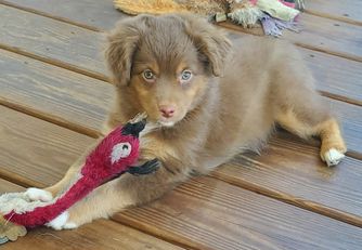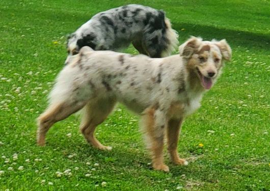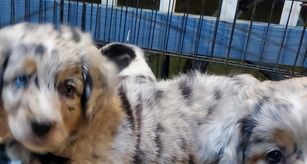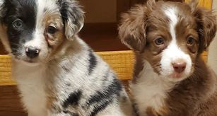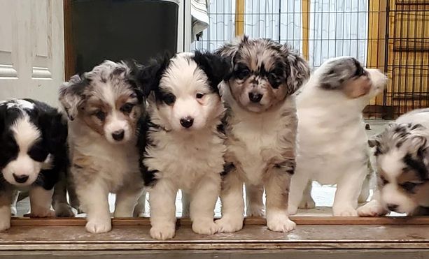 Our puppies include blue merle and red merle. Colors will vary depending on the parent dogs.