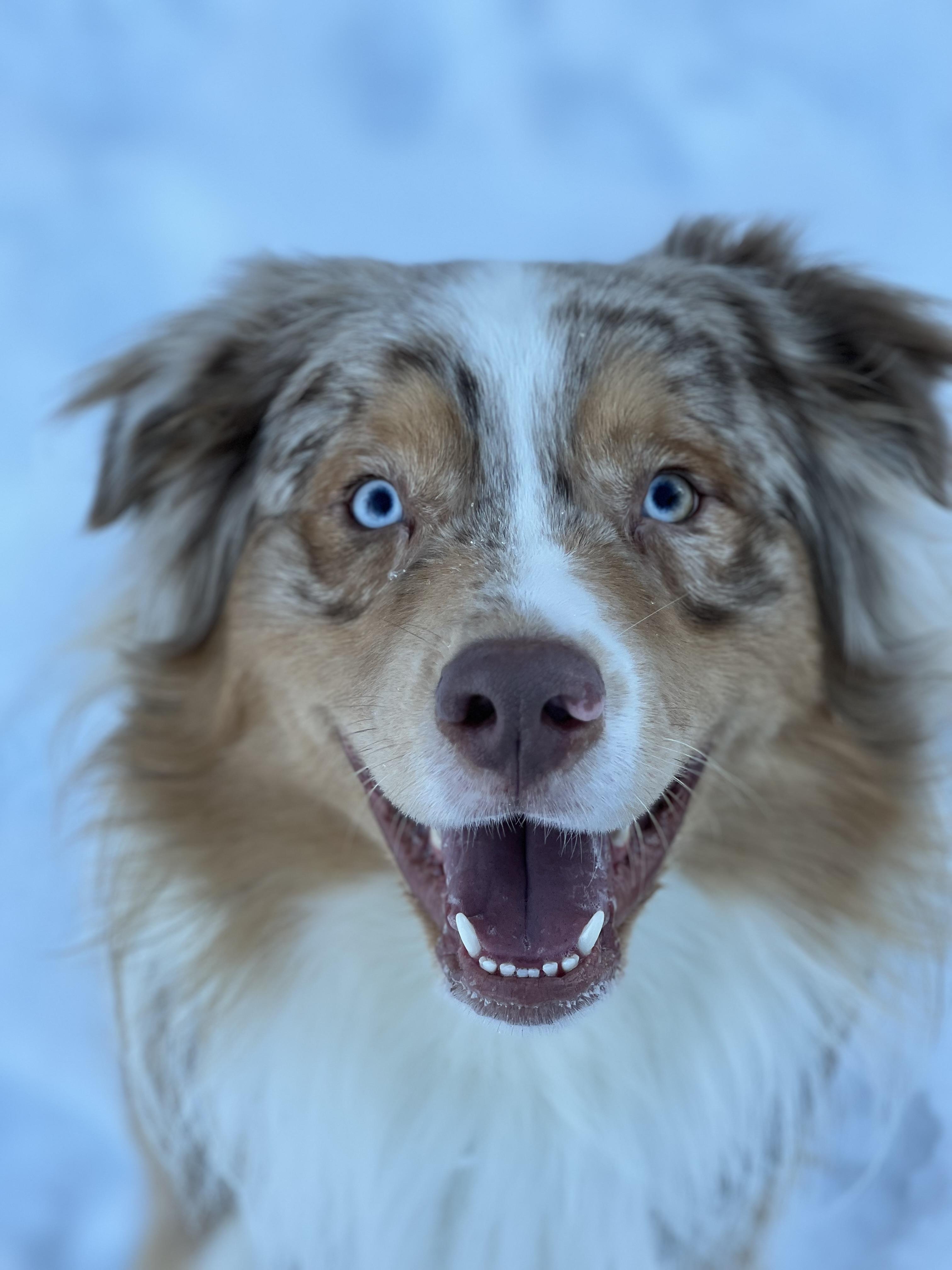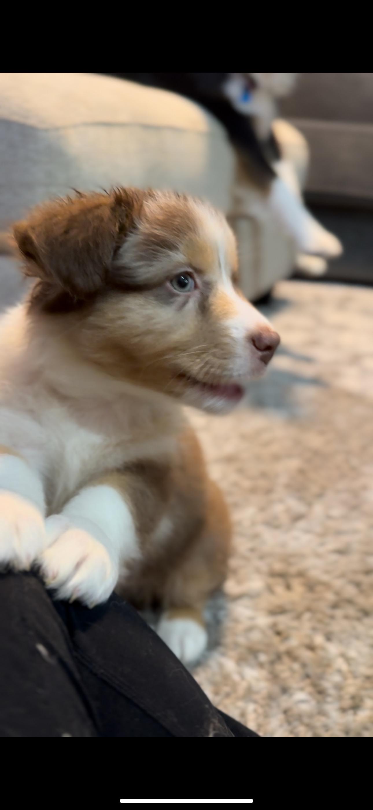 Sire is a 2 year old Red Merle who is a big ball of energy that would be perfect for everyone, from farm dog to bed snuggling love bug.