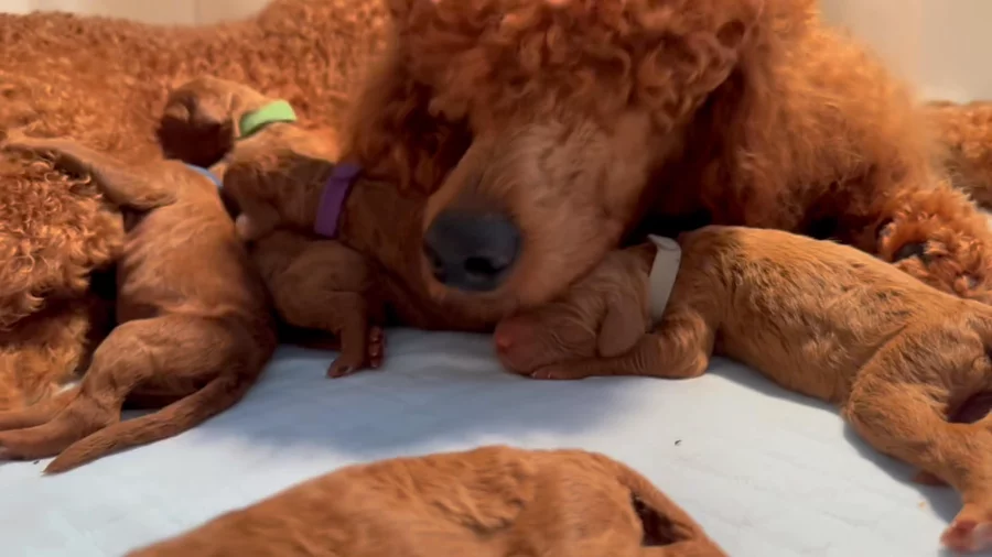 Ruby the poodle reports to performing the health tests below on their breeding dogs. Ask your breeder about the tests performed on the parents of your litter. Learn more about health testing for Standard Poodles.