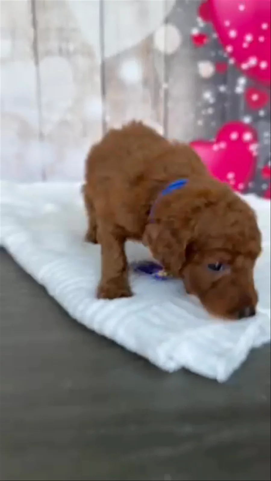 Meet Blitzes — one of the most gorgeous, deepest red Toy Poodles you’ll ever see. He has a sweet, mellow temperament and a loving personality that makes him the perfect companion. Blitzes is ready to bring joy, comfort, and a truly beautiful journey into the right family’s life.