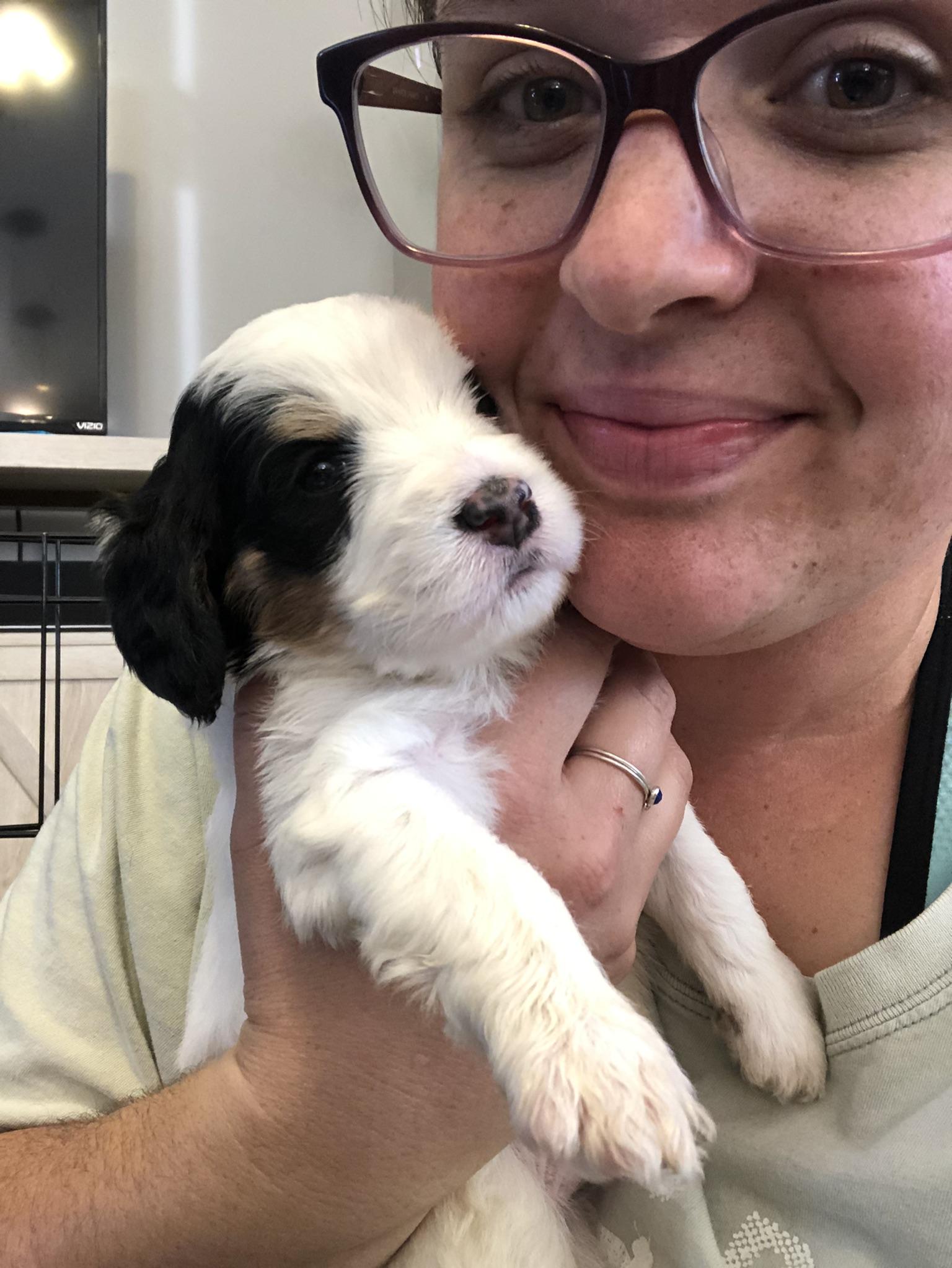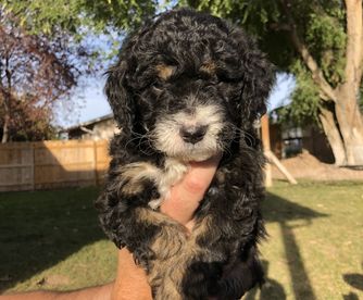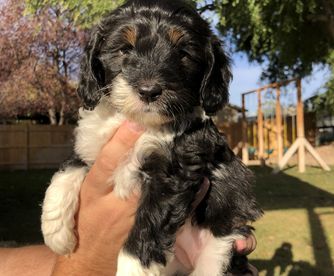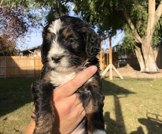 Pearl is a female Bernedoodle. Carefully selected as a great representative of her breed, Chante decided to make her part of their program. Chante has passed Good Dog’s screening process, which involved a review of their breeding practices, environment, and the mental and physical health of their dogs.