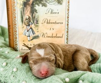Tilly is a female Goldendoodle. Carefully selected as a great representative of her breed, Becky decided to make her part of their program. Becky has passed Good Dog’s screening process, which involved a review of their breeding practices, environment, and the mental and physical health of their dogs.