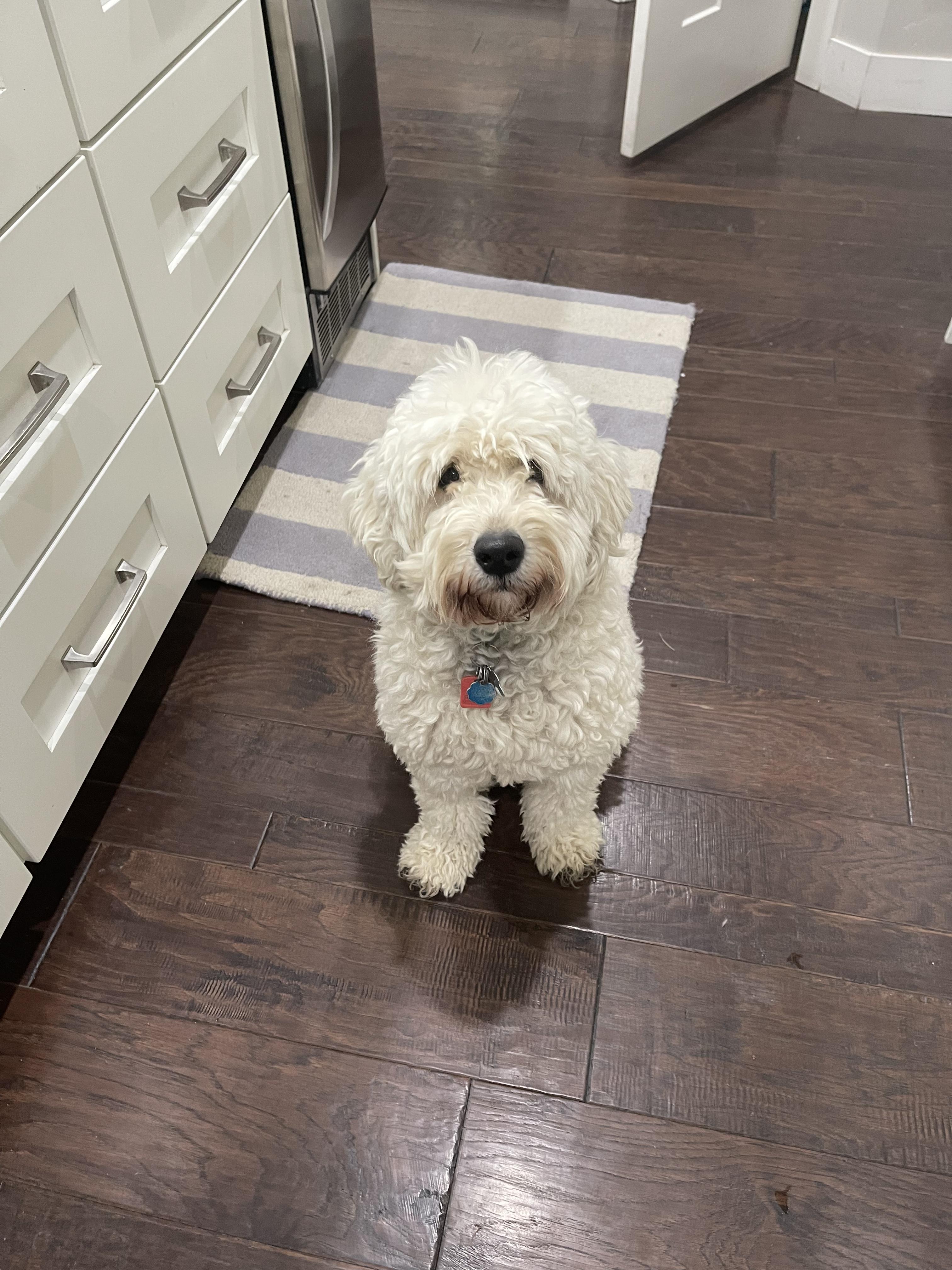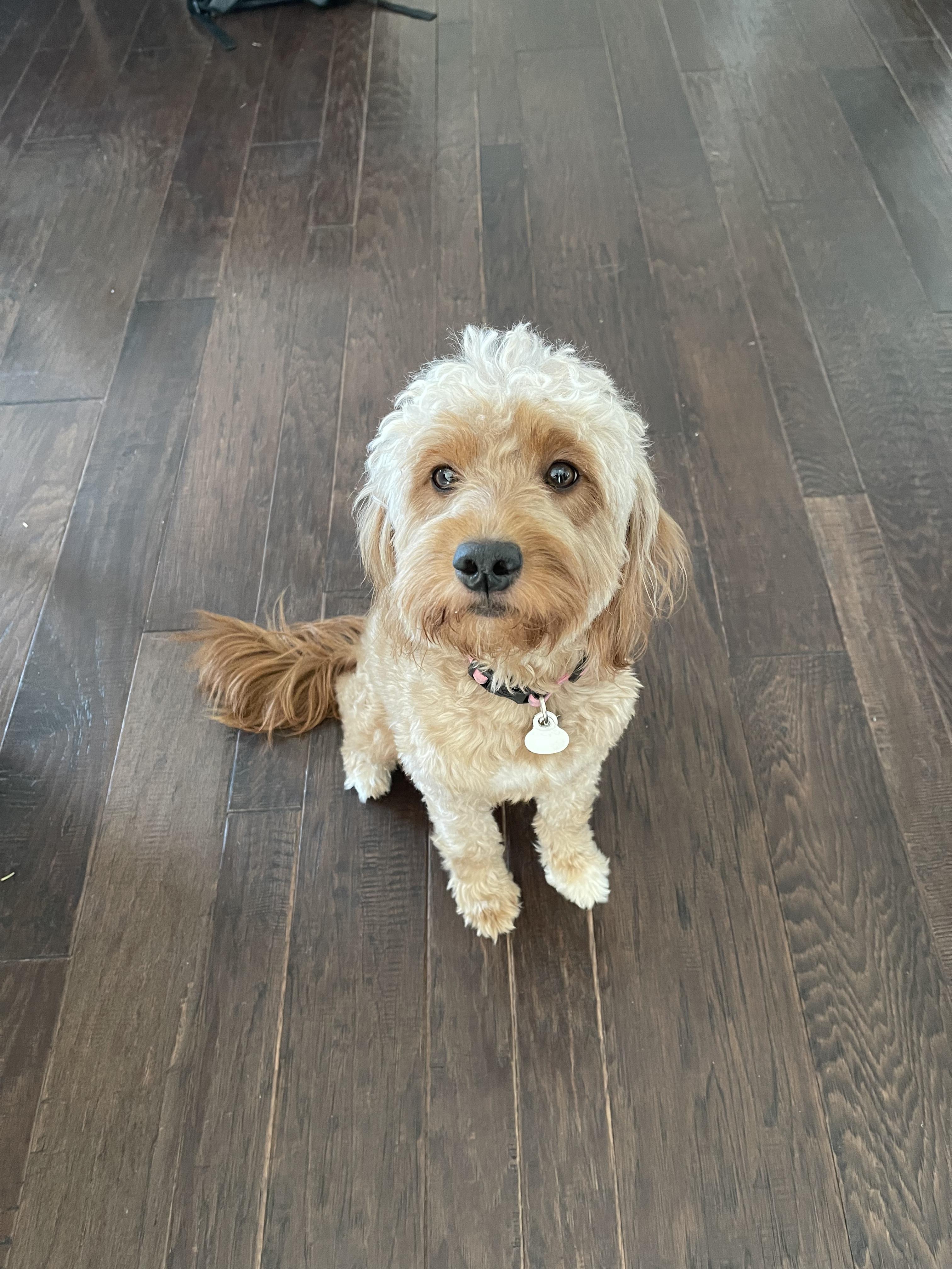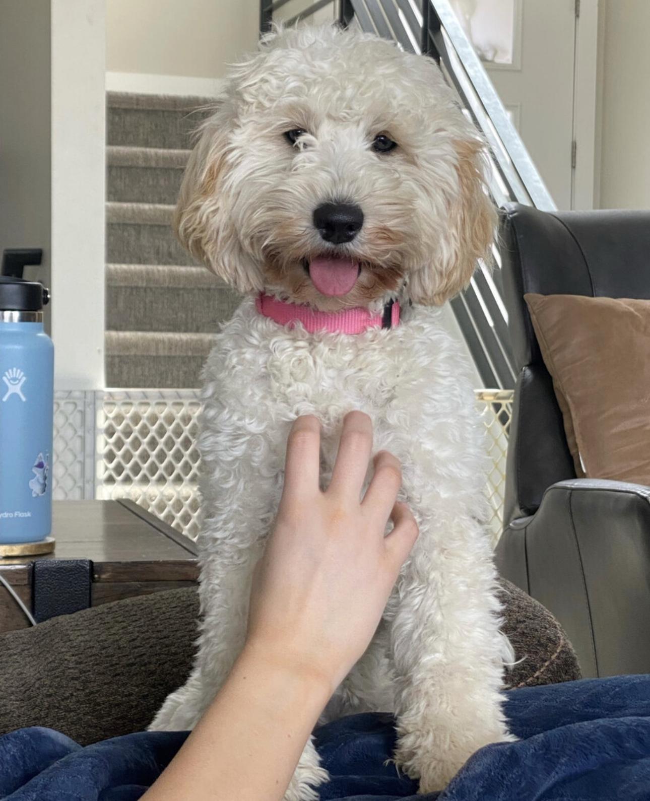 Muffy is an extremely affectionate Englishcream goldendoodle girl. She loves everyone she meets! She is eager to sit at your feet and craves those belly snuggles. She is a wonderful dog!!