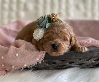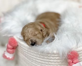 Our puppies include cream, apricot, and red. Colors will vary depending on the parent dogs.
