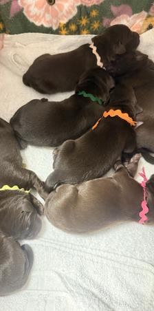Labrador Retriever puppies include black, chocolate, and yellow. Colors will vary depending on the parent dogs.