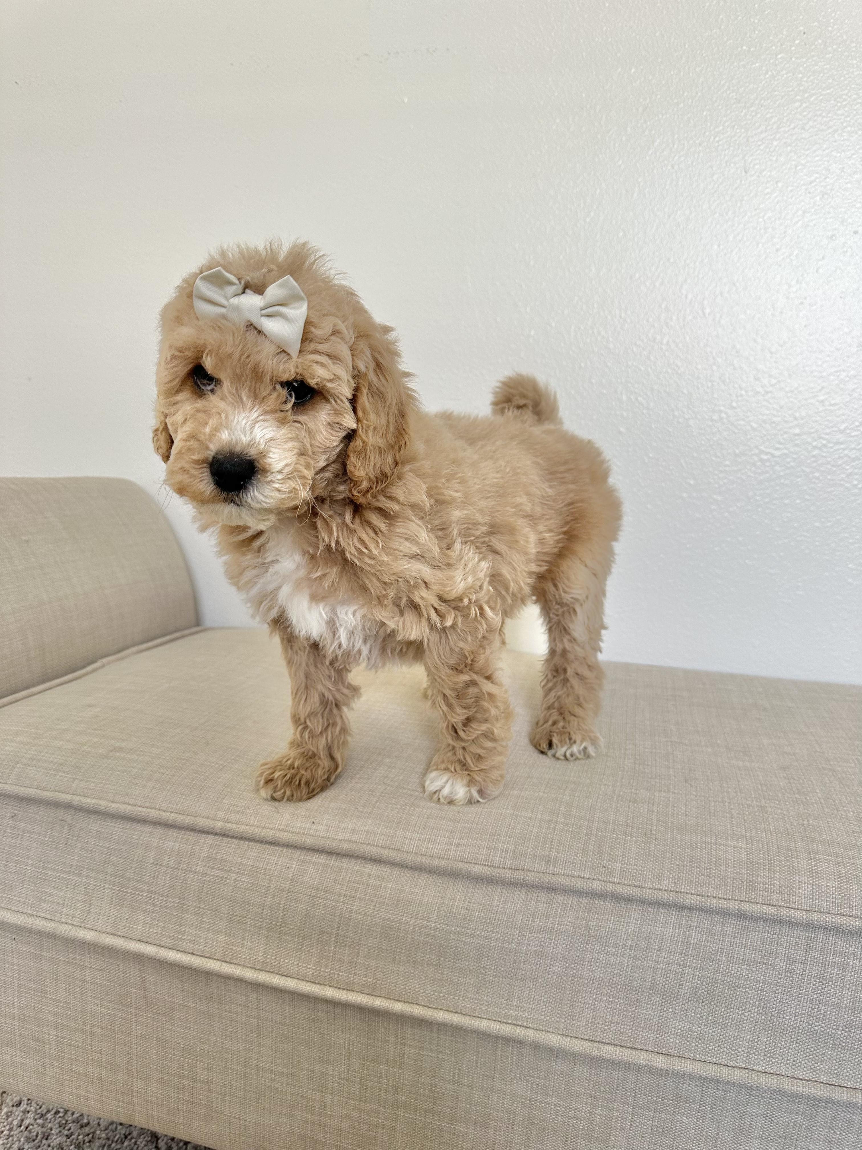From the start of working with Ashley from Ruff Country Doodles it was a wonderful, exciting experience. She was quick to respond, available to answer any questions and efficient on updates. Ashley was very easy to work with. Per my request Ashley kept bows in Millie’s hair so she would get used to them and she sent picture updates. I would recommend Ruff Country Doodles to anyone looking for a healthy, happy pup! My heart is happy. Thank you Ashley.