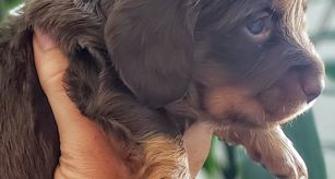 Our puppies include chocolate, chocolate and tan, and dapple. Colors will vary depending on the parent dogs.
