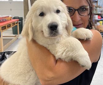 “The puppy price includes a health guarantee, 1st set of shots, microchip, limited registration, socialization, Puppy Culture and the start of potty training. All of our puppies are the same price, regardless of color or size. Deposits will be refunded for any reason up until the day of pickup (puppies will be 8 weeks at that time). The deposit holds a puppy for you in the sex that you conveyed with Ruff Life Goldens. Ultimately, we have final say in which puppy is placed with each person/family.”