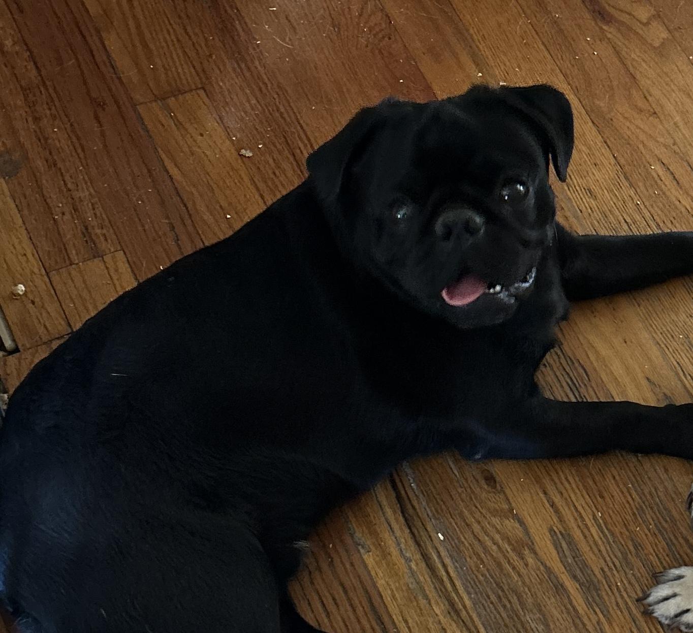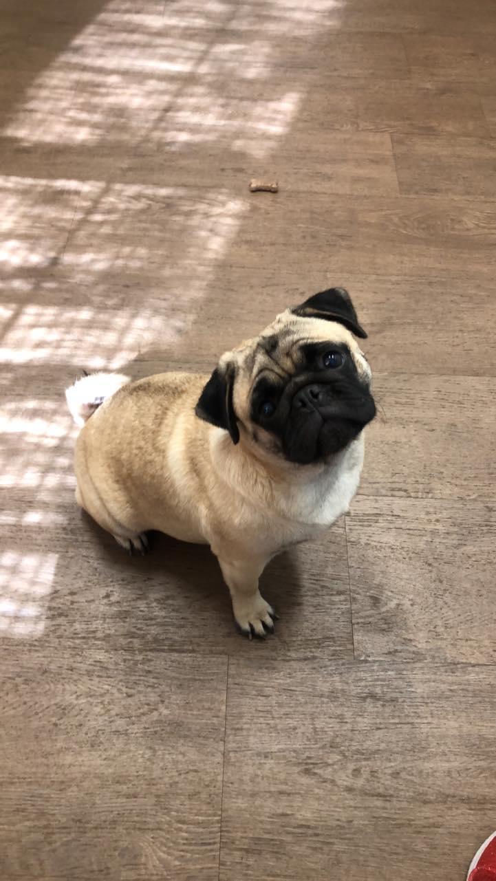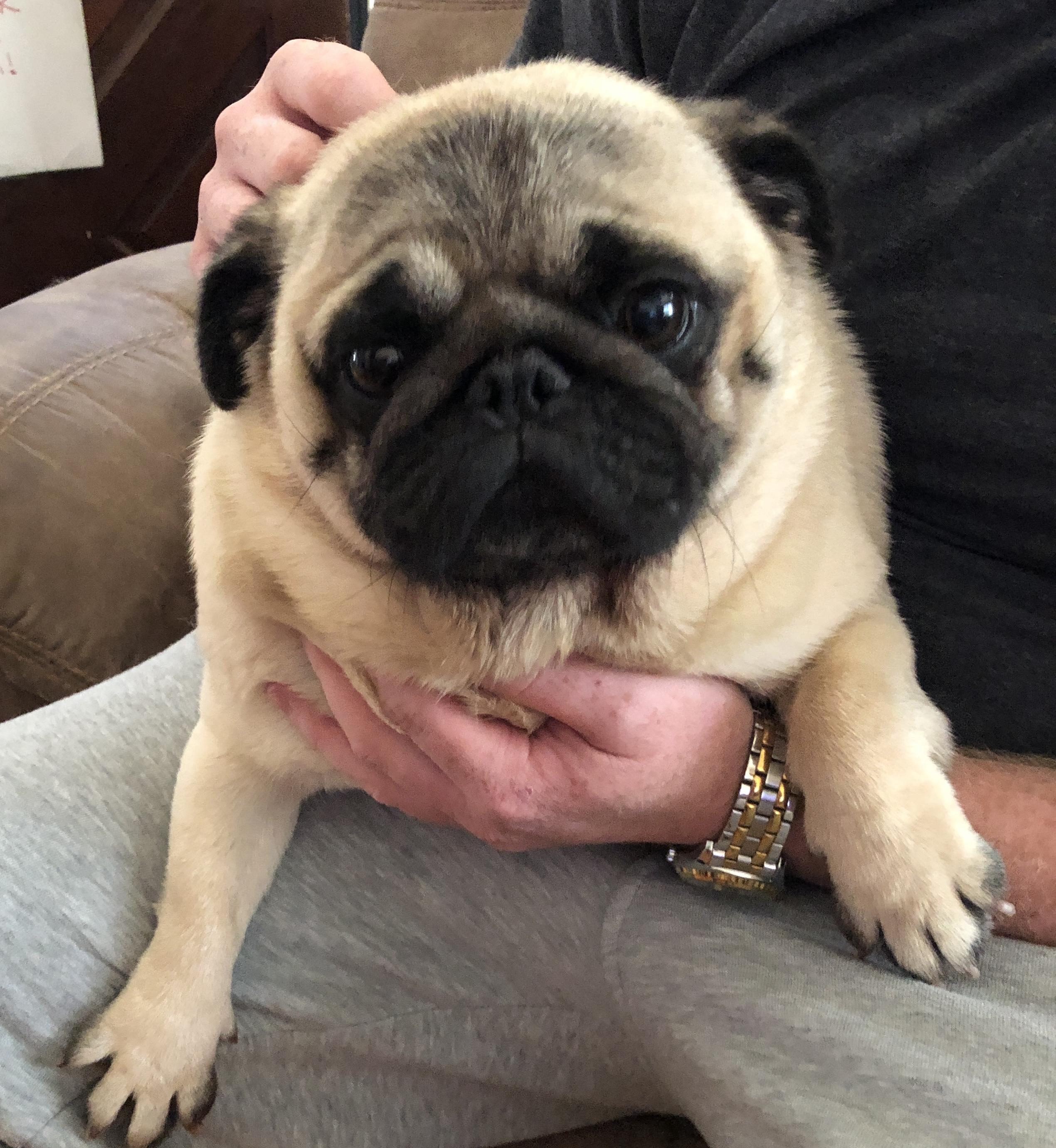 Skully is a male Pug. Carefully selected as a great representative of his breed, Cy decided to make him part of their program. Cy has passed Good Dog’s screening process, which involved a review of their breeding practices, environment, and the mental and physical health of their dogs.