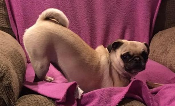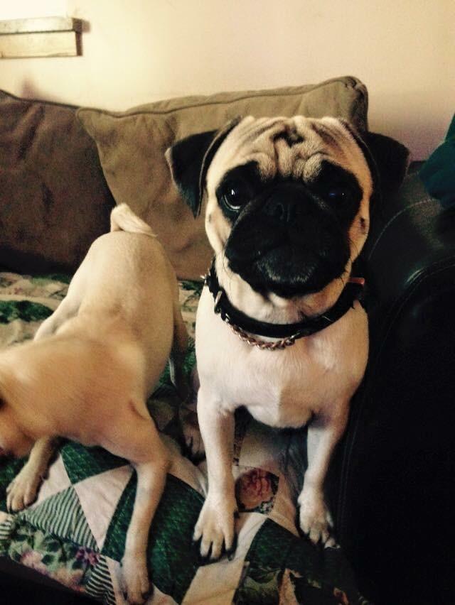 Stormie has a bit of chocolate around her face and down her back, she’s short and is one of the cutest pugs I have!