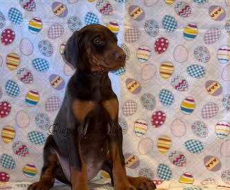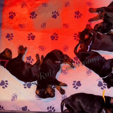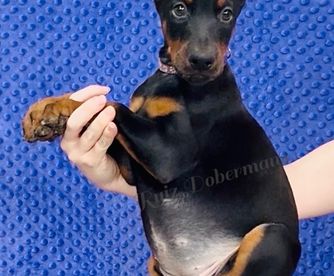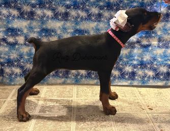 After my Chihuahua passed from old age, I wasn't sure if I wanted to get another dog. I've always wanted a Doberman but wasn't sure if I were ready so I waited. Browsing the local breeders in my state, I found Ruiz Dobermans on Gooddog. I saw her pups and instantly fell in love with them. They were far better looking than the other breeders pups near us. They seemed so much healthier. I like that Ruiz has transparency on the health records and breeding. She frequently post updates, videos and pics on FB so you can see the puppy's growth progress. Sarah Ruiz was super helpful, knowledgable and very friendly. I had a million questions about Dobermans and she was happy to help. She gave me all of the information I needed to make an informed decision on adoption. She's always there if you have questions or need help with something. I can't say enough good things about her. As far as her price, you get what you pay for: well bred, equisite bloodlines and amazing health & temperment. I've gotten so many compliments on my puppy how smart and healthy she is. The price was totally worth it and I'd do it again for how amazing she is. This pup is my best friend and you can't put a price on that.