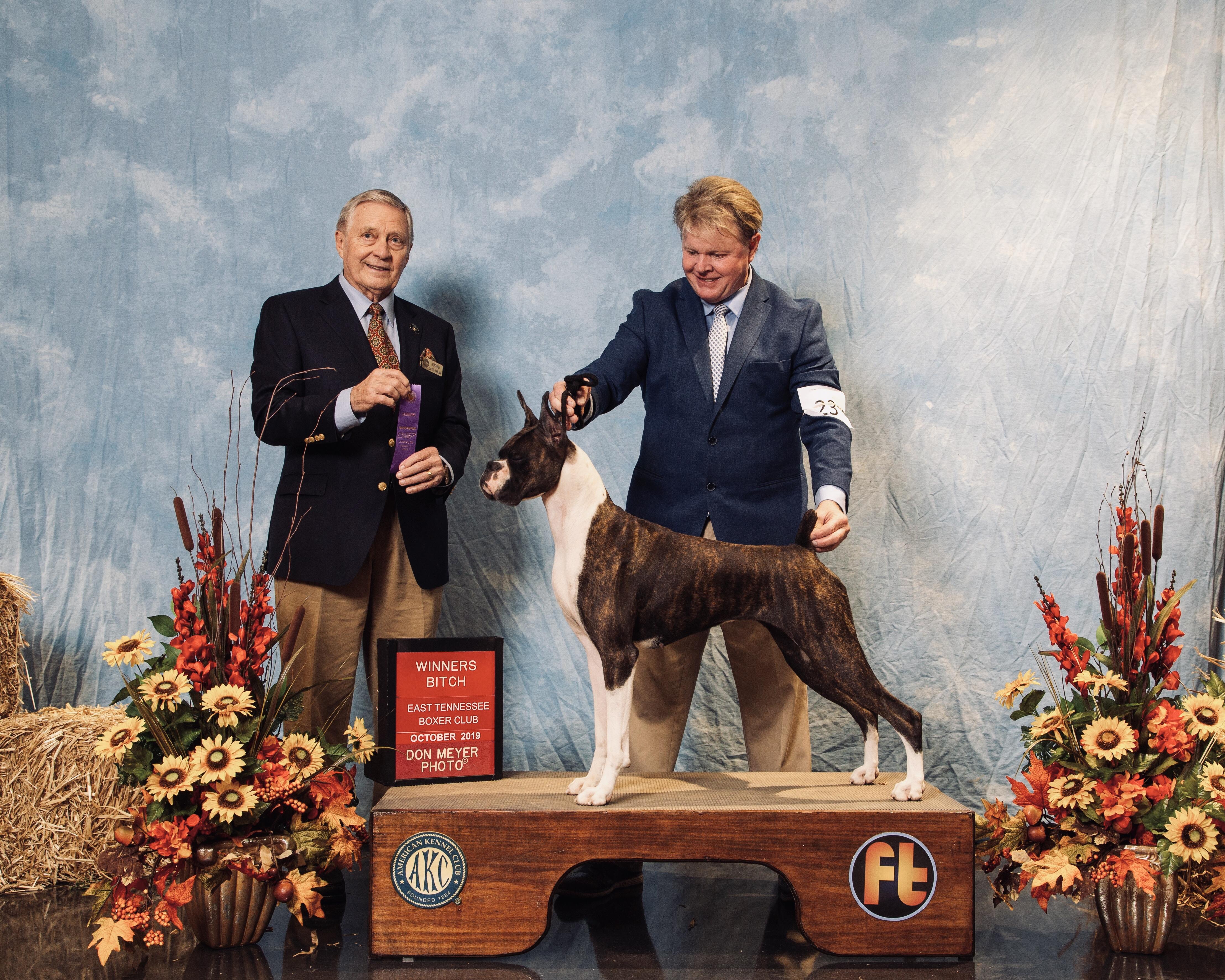 Ann and Steve Anderson got their first Boxer in the early 1960's. Their passion for the breed grew as they participated in shows with their dogs and got more involved in the breed. They started breeding in 1991. In 1995, my husband, Rick, and I became the exclusive trainers and handlers for Runner Rum dogs. We adore these dogs, and we love working with our dear friends Ann and Steve to continue their program's phenomenal legacy.