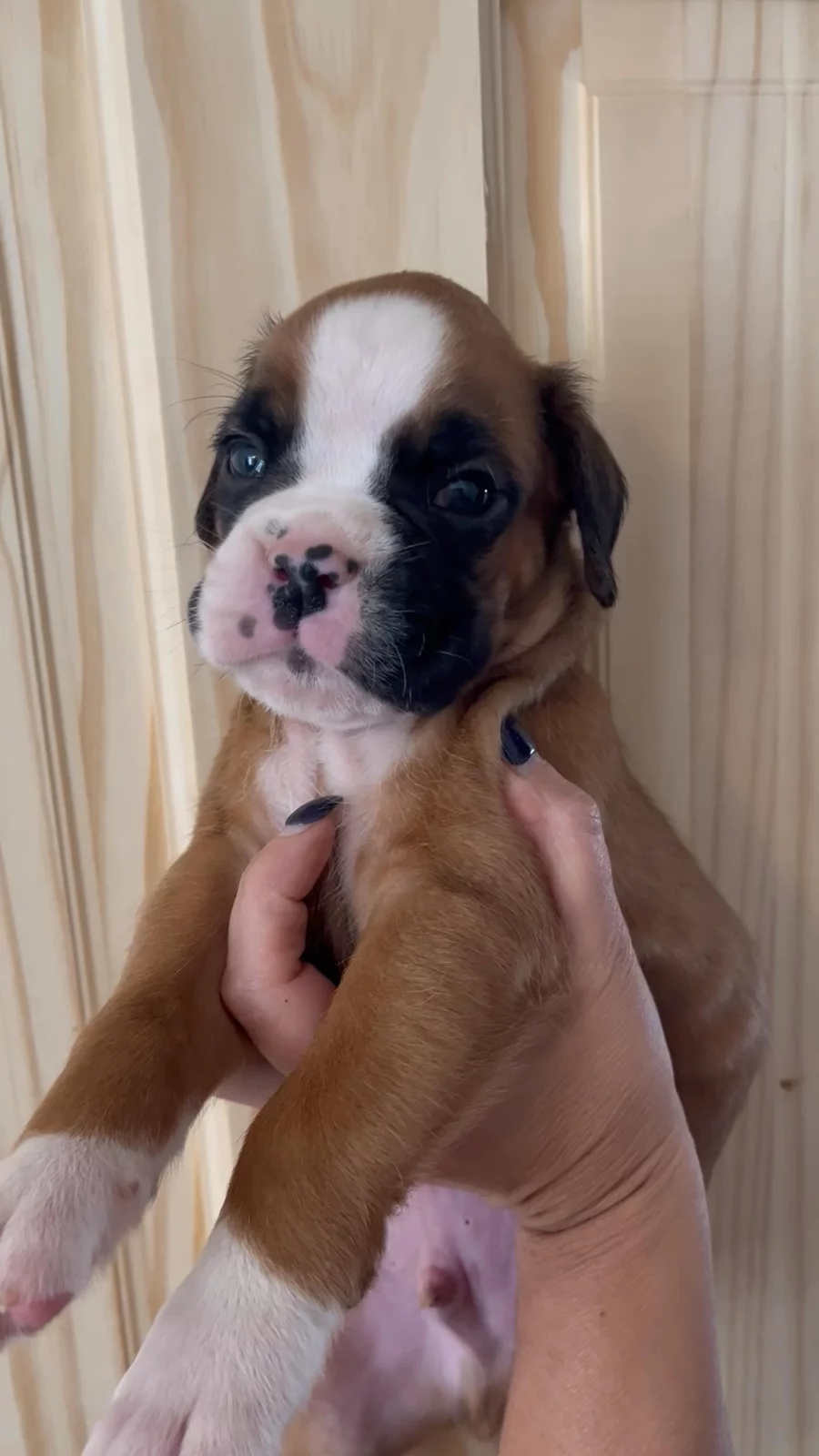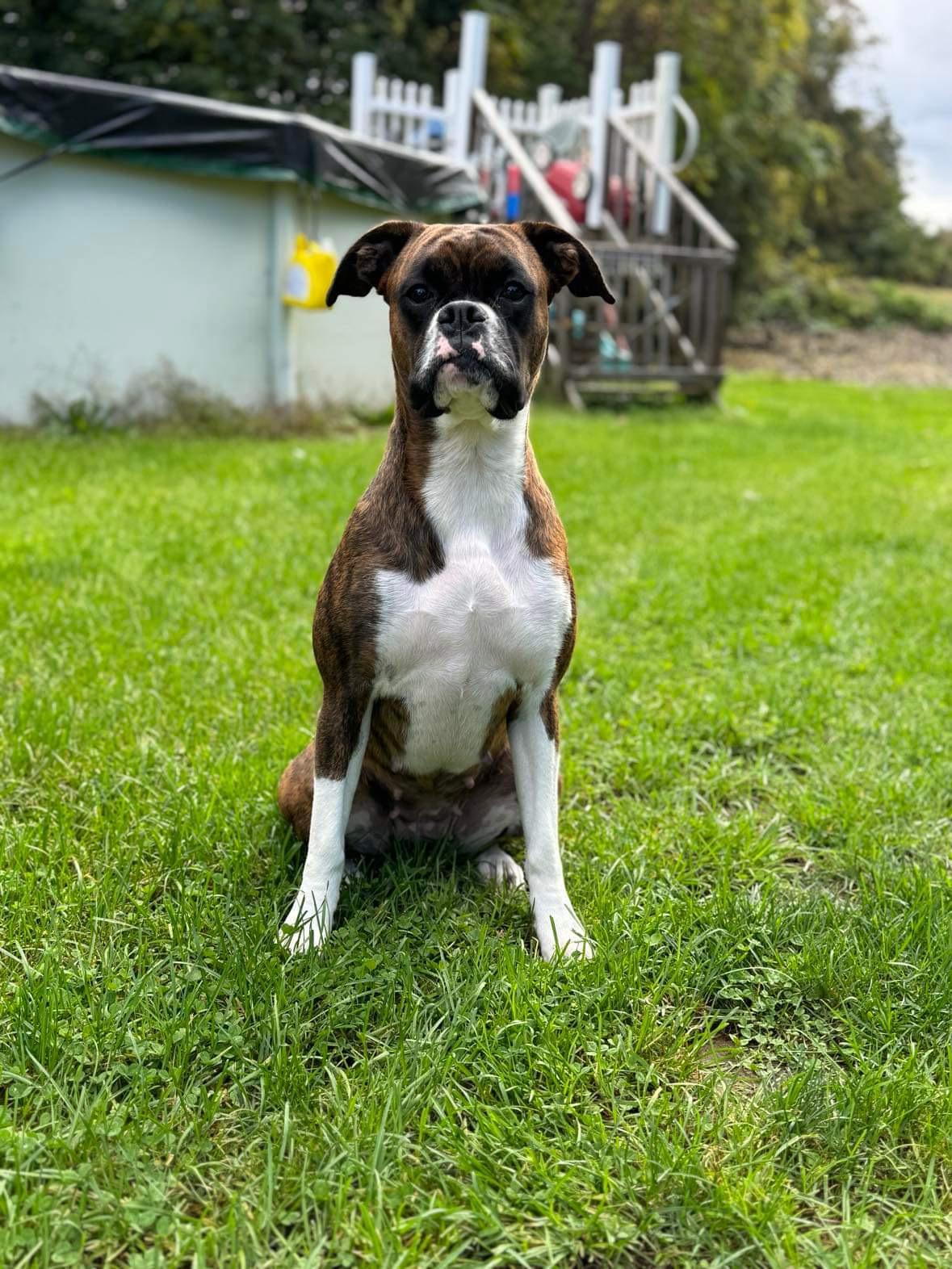 Rebel is a male Boxer. Carefully selected as a great representative of his breed, Corie decided to make him part of their program. Corie has passed Good Dog’s screening process, which involved a review of their breeding practices, environment, and the mental and physical health of their dogs.