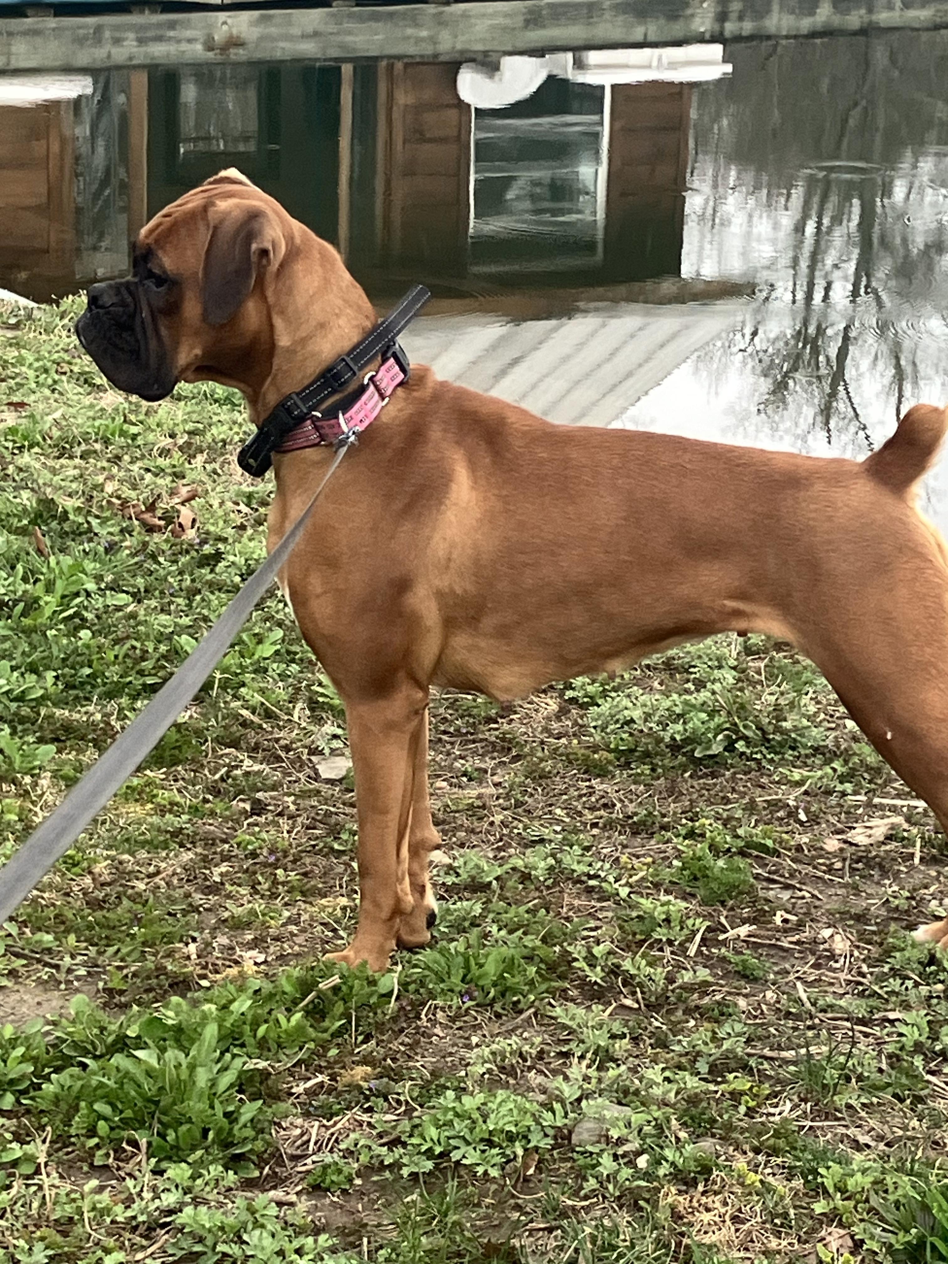 Athena is a female Boxer. Carefully selected as a great representative of her breed, Corie decided to make her part of their program. Corie has passed Good Dog’s screening process, which involved a review of their breeding practices, environment, and the mental and physical health of their dogs.