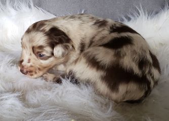 Our Miniature Australian Shepherd puppies include blue merle, red merle, red, and black. Toy Australian Shepherd puppies include red, black, blue merle, and red merle. Colors will vary depending on the parent dogs.