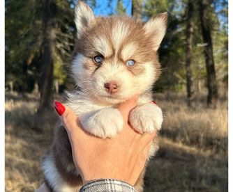 We had a great experience working with Jaque selecting and learning about our Pomsky. He’s playful and super smart. Very affectionate and doing well with our cat and other dogs. Has already learned to sit and doing great with potty training! We are training him in on our electric fence. Can’t believe what a great dog he is! We love him to death. Thanks so much for a great dog!