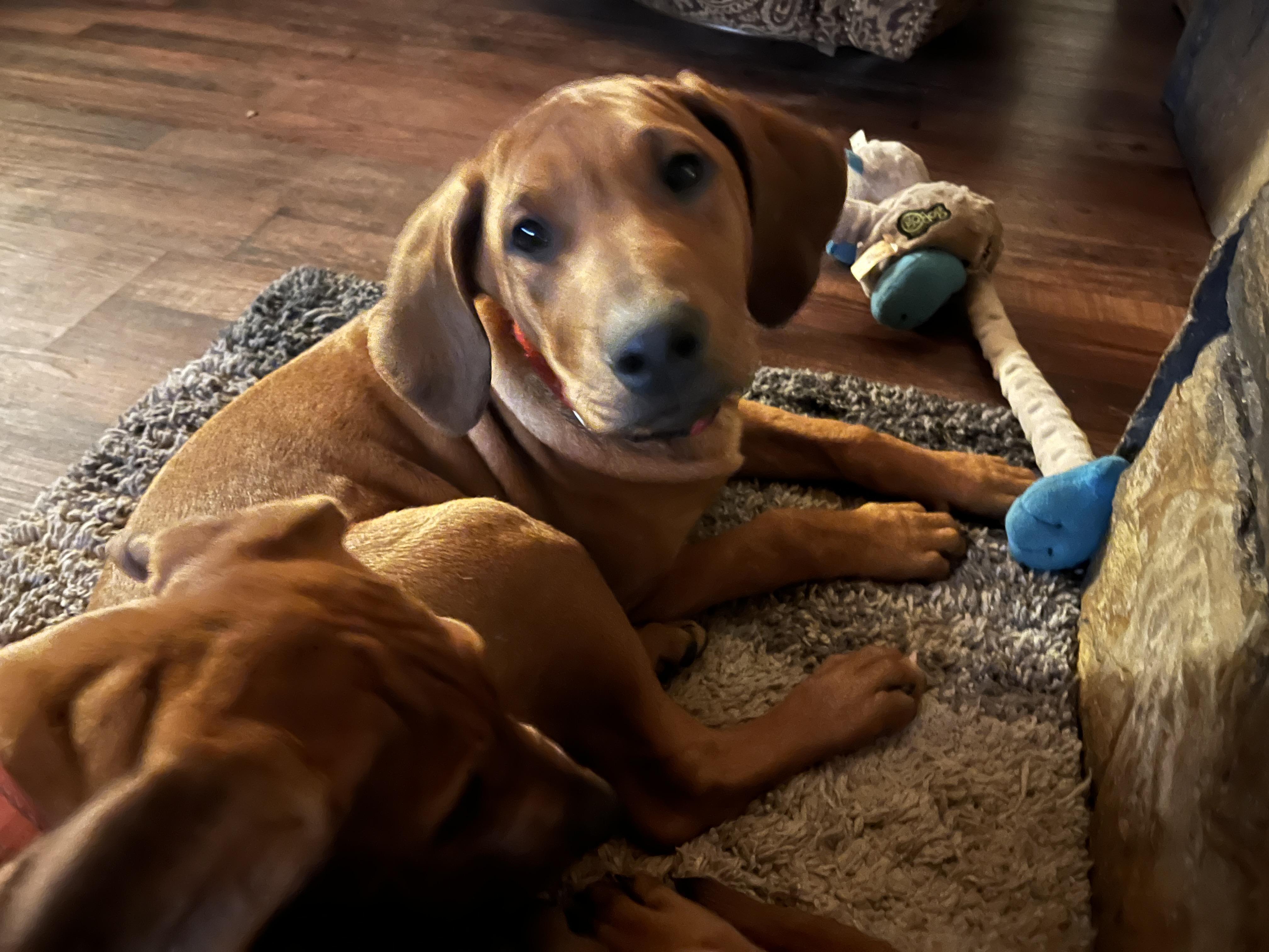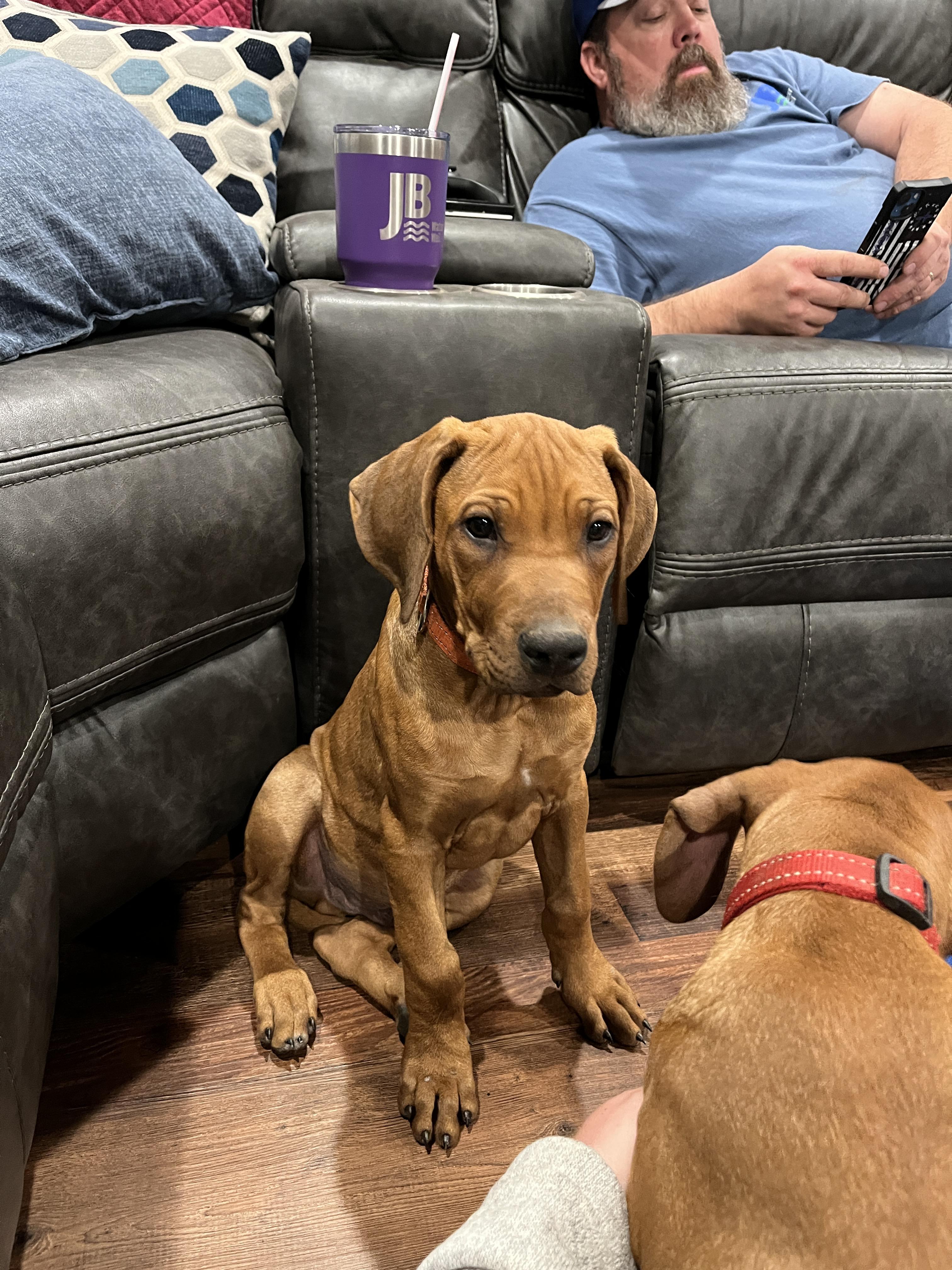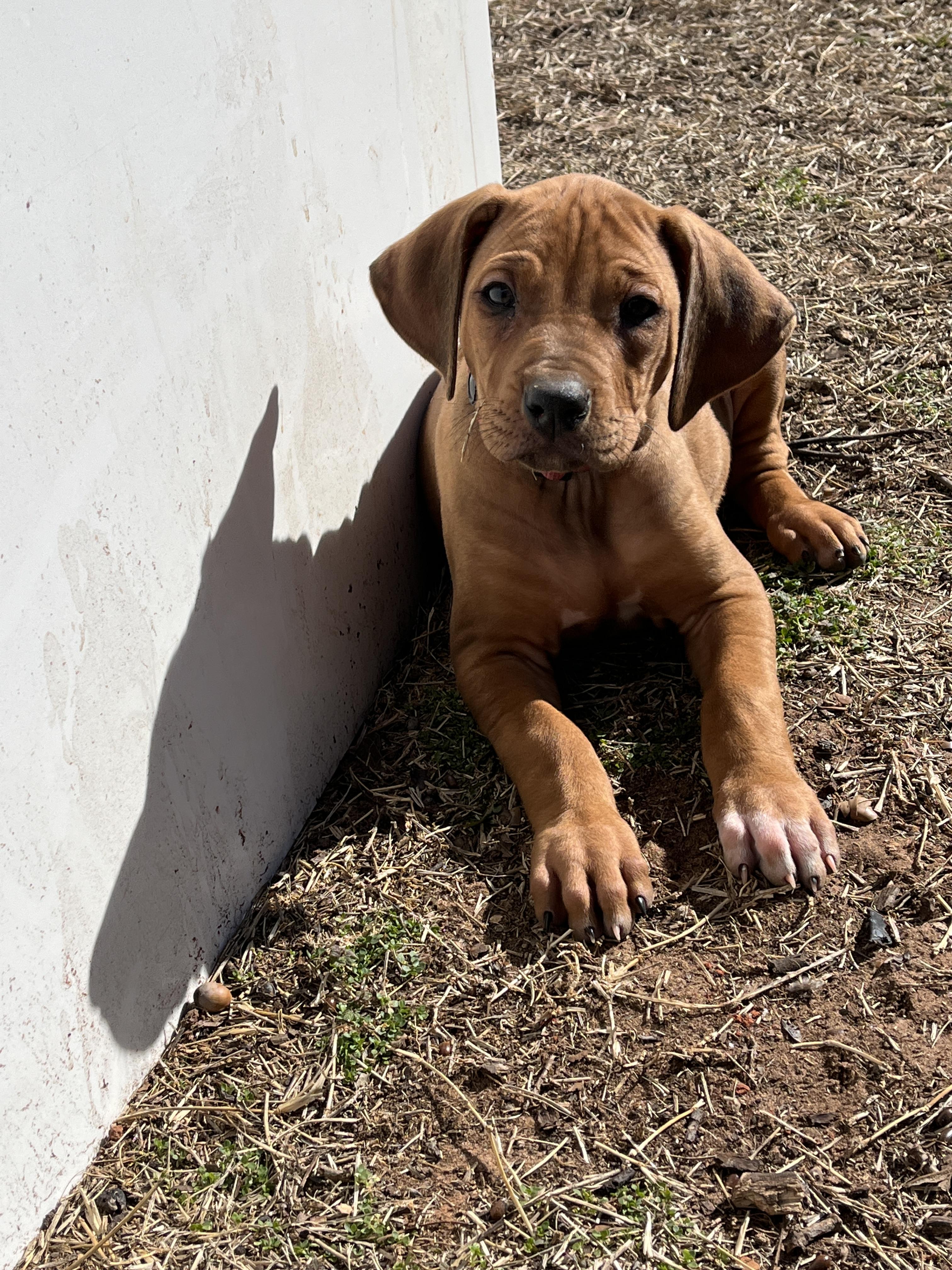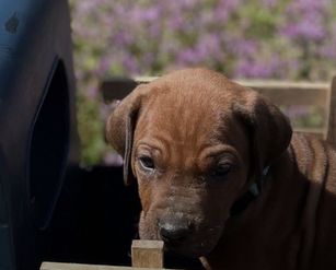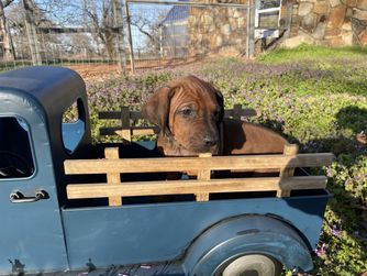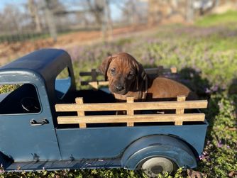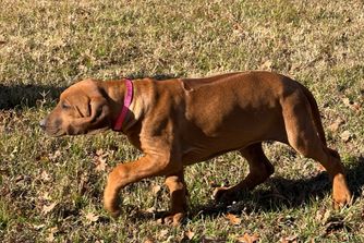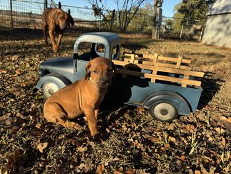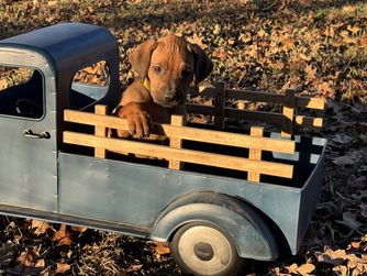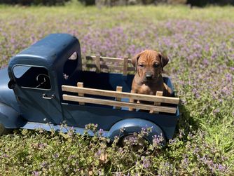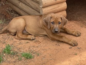 I'm Angela B., the breeder behind Running From Reality Ranch & Ridgebacks located in Oklahoma. We hold ourselves to high standards for the integrity of our program. All of our puppies are socialized, nurtured, and loved! We are dedicated to raising the bar for thoughtful breeding with optimal health in mind. We do our best to produce puppies that have the best chance at living long, happy, and healthy lives as your best friend!