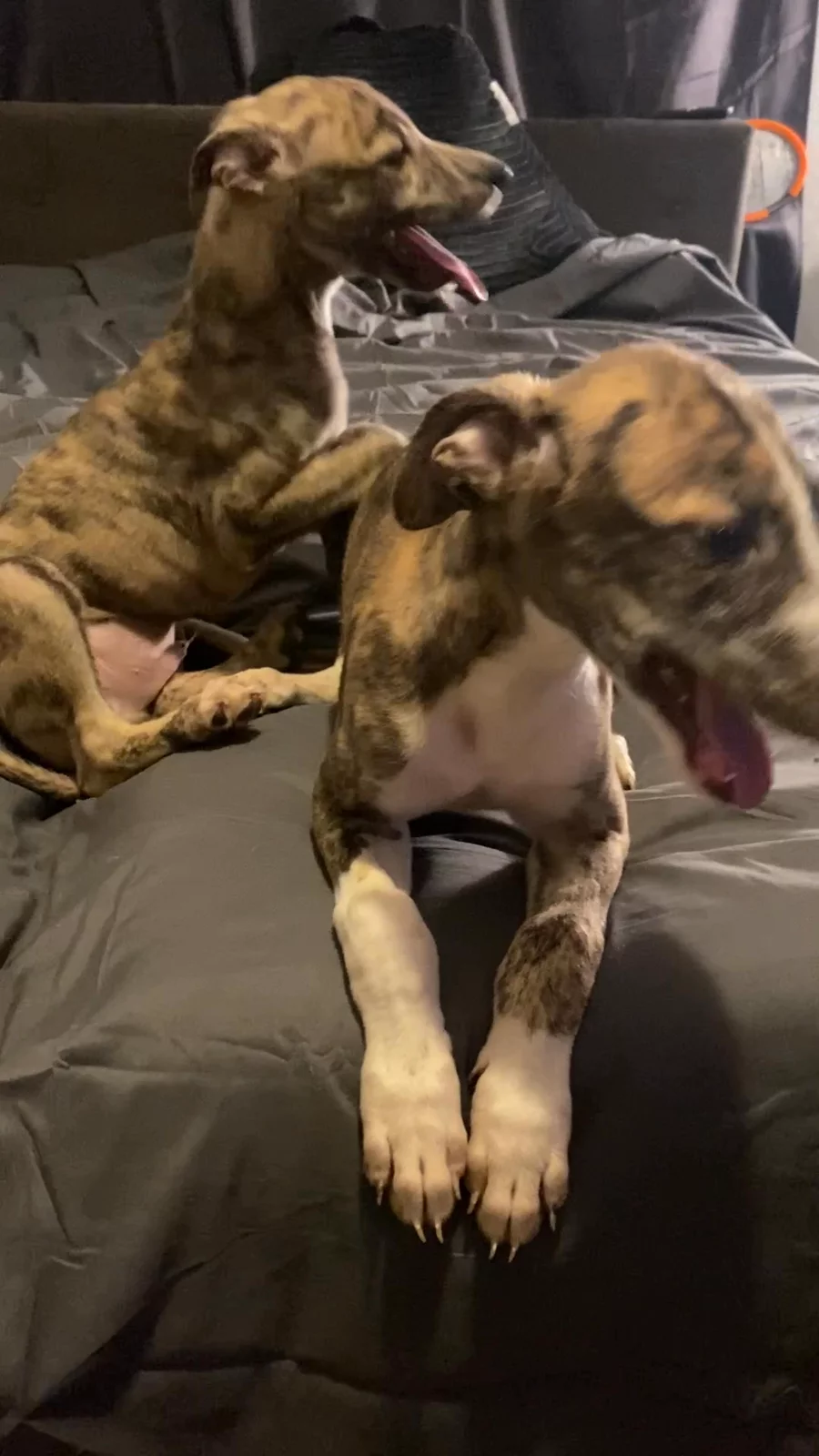 Acorn from Greta’s litter and Simon from Simone’s litter, having fun on a Saturday night ♥️