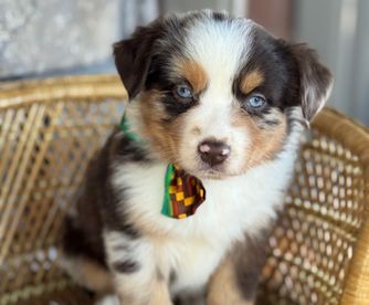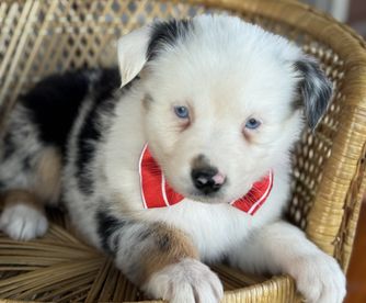 Miniature Australian Shepherd puppies include blue merle and red merle. Colors will vary depending on the parent dogs.