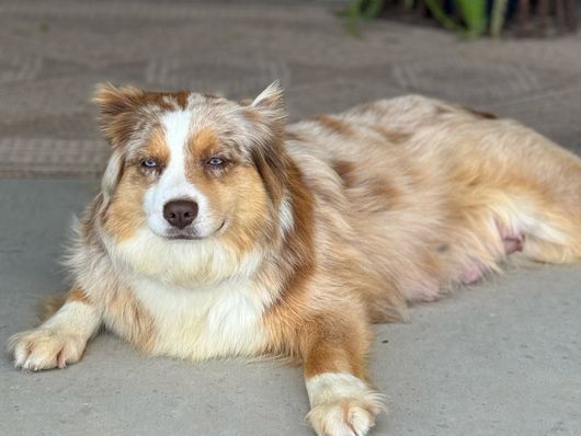 Bristol is a female Australian Shepherd. Carefully selected as a great representative of her breed, Kallie decided to make her part of their program. Kallie has passed Good Dog’s screening process, which involved a review of their breeding practices, environment, and the mental and physical health of their dogs.