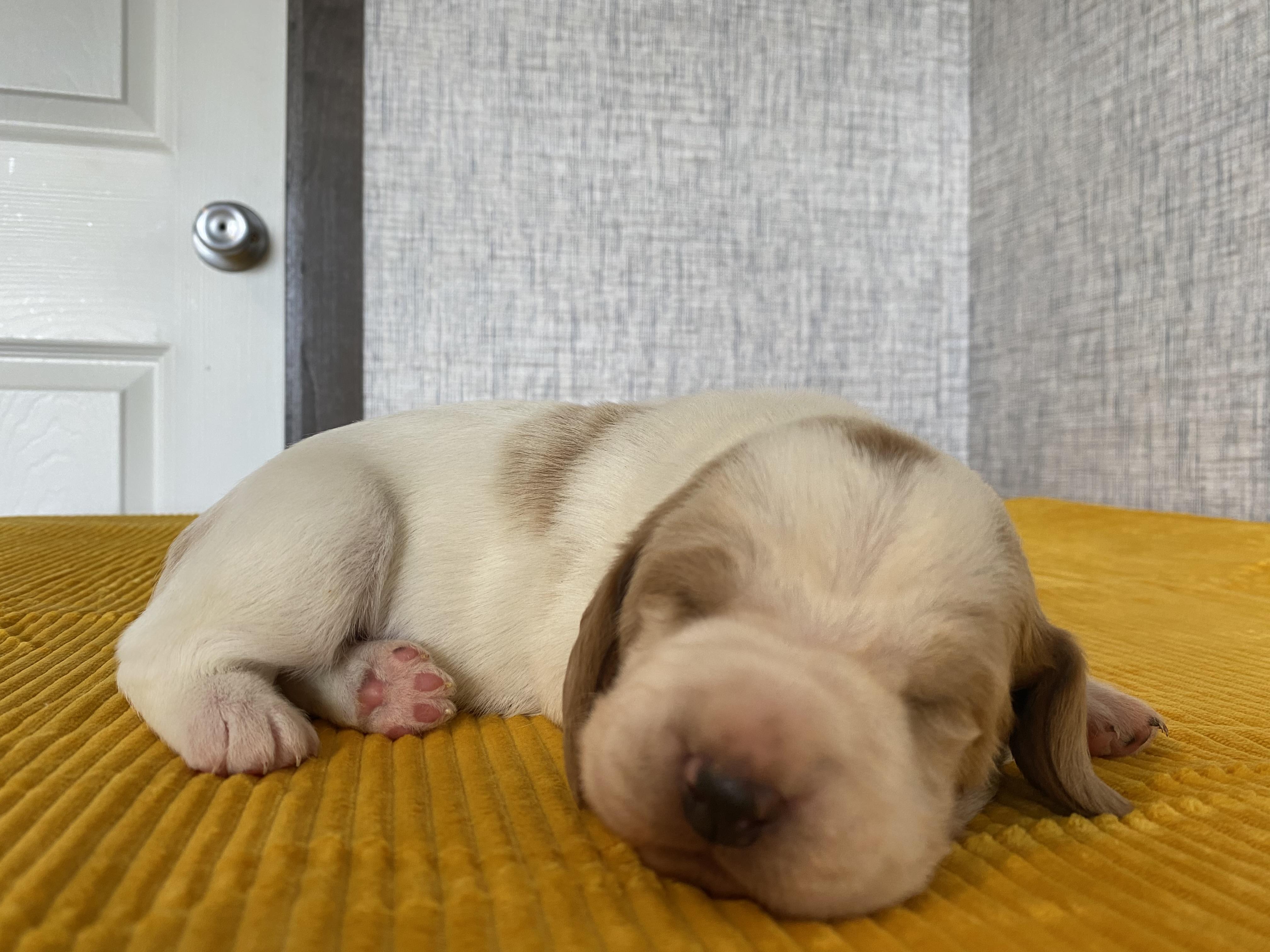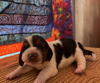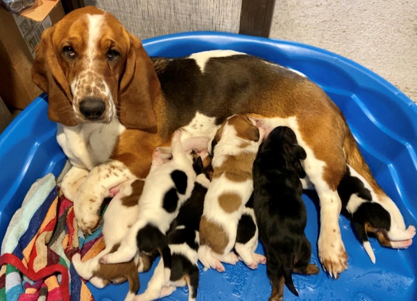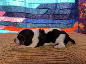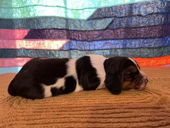 Sarah was great from the jump! She sent pictures/videos as our little Peachy grew. She was very quick in responding and knowledgeable on all my questions. She loves Bassets, respects the breed, and can be trusted. We picked up our pup right at 8 weeks. Peaches came happy, healthy, SWEET, silly, knowing how to sit, and almost potty trained 🥹 She fit right in, and became family instantly. We love her! Thank you Sarah, Marnie, and Black Benny! ♥️