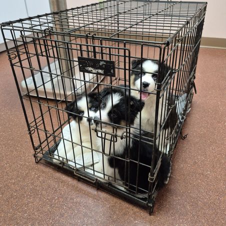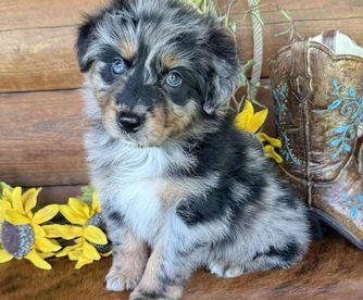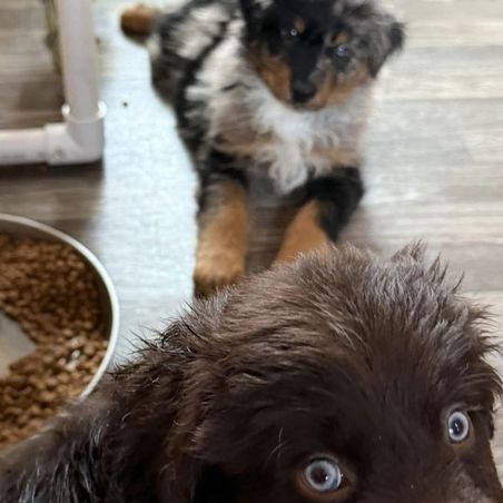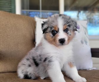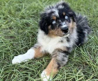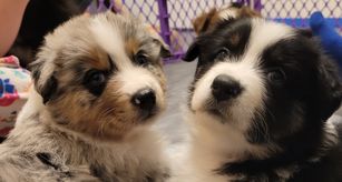 Our puppies include red & white, black & white, red merle, blue merle, black tri-color, and red tri-color. Colors will vary depending on the parent dogs.