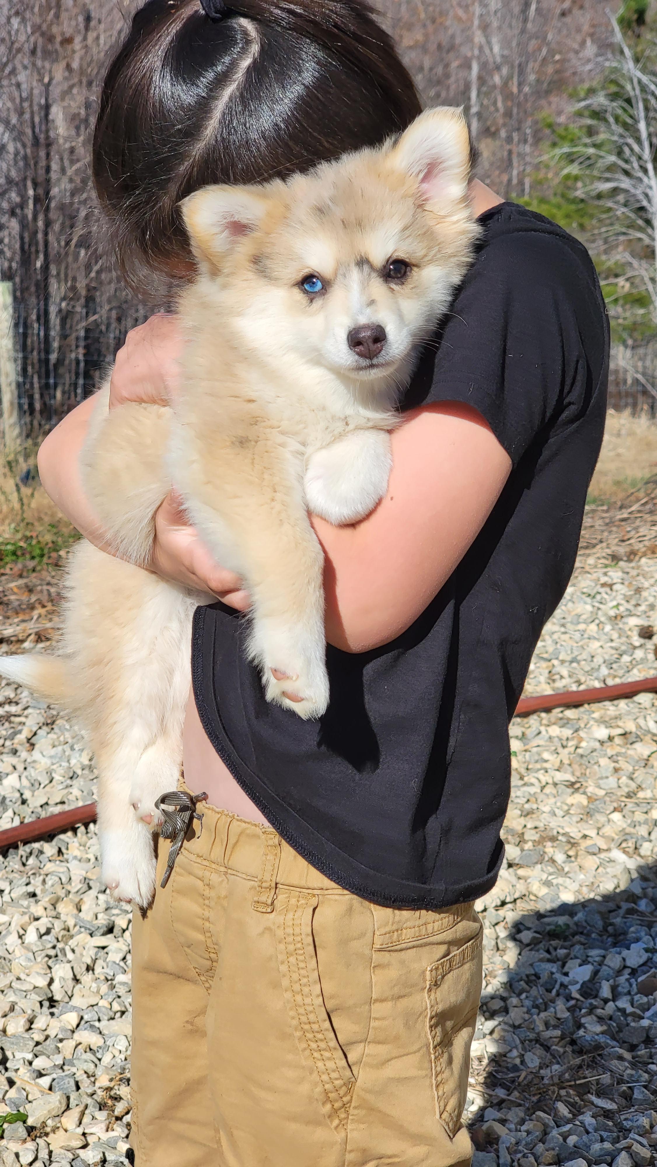 I'm Heather R., the breeder behind Rustic Charms Miniature Huskys located in Gladstone, VA. All pups are crate trained, wormed and up too date on vaccines when they leave, I raise toy Australian huskys and pomskys in my breeding program, if interested in any of my pups message me through my Facebook page Rustic Charms Miniature Huskys.