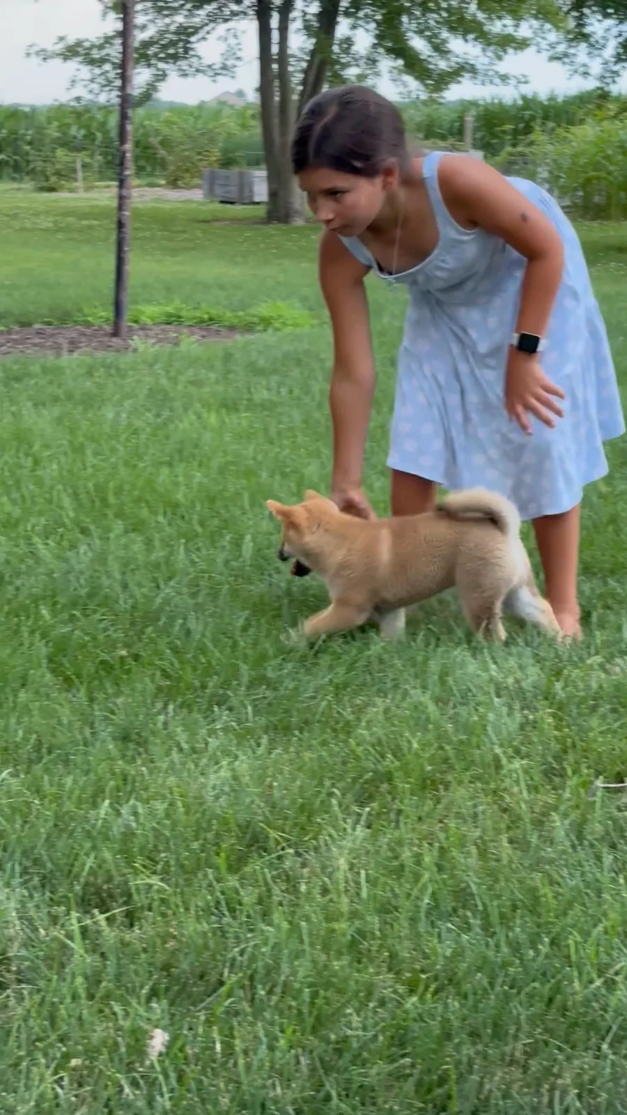 Punkin has been an absolute dream- potty training was easy, she only had two accidents inside. Within the first two weeks, she has learned to sit, stay, and shake :) our pup is very sociable, cuddly, and has a huge personality for such a little gal. We already can’t picture life without her & are so happy we chose Rustic Country Shibas for a well rounded pup