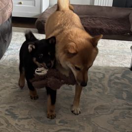 Abe&Laura were very responsive. Patiently answering all my questions and even sending me pics and videos of Kona’s (formerly Urban) progress. My husband drove out to get her and he was impressed by Abe’s friendliness and willingness to accommodate last minute requests. Kona was very reserved for the first day or two, with limited interaction with our 6.5 yr old Shiba mix. But after just one week together her sassy little personality is coming out and she is playing and wrestling around with Ruby…she even has Ruby playing with toys for the first time ever! We may have accidentally gotten our dog a puppy. 😂 Kona is pretty much potty trained and already was going to the door to go out from day one (thank you Abe&Laura). Had her to the vet yesterday and all is well health wise. She isn’t much for snuggling right now as she is in the “baby shark” phase but she does give lots of kisses in between the biting. She seems to learn quickly so I’m sure we will have her only biting on toys here soon. We would definitely use RC Shibas again, if we wanted to grow our family again. They clearly love these dogs. 💕🐕