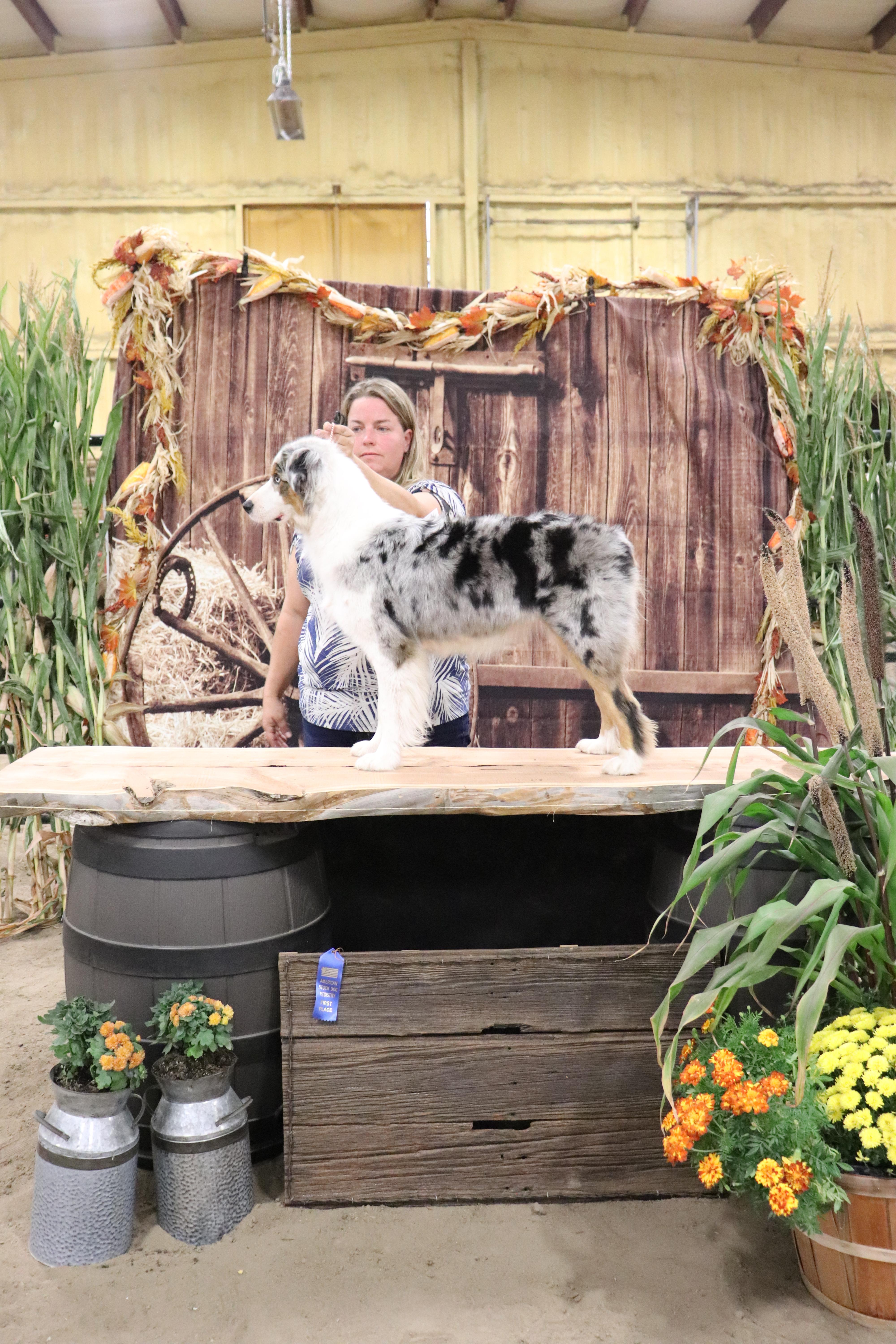 Our Aussies are mainly our family pets. They spend most of their days running around the farm helping with whatever we are doing outside. They make great family pets. They are called Velcro dogs because they wanted to be with their families no matter what they are doing. My aussies have a lower herd drive, they still need exercise and something to do, but they are not ones to bounce off the walls.