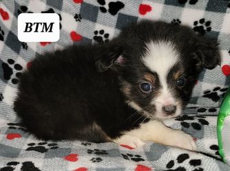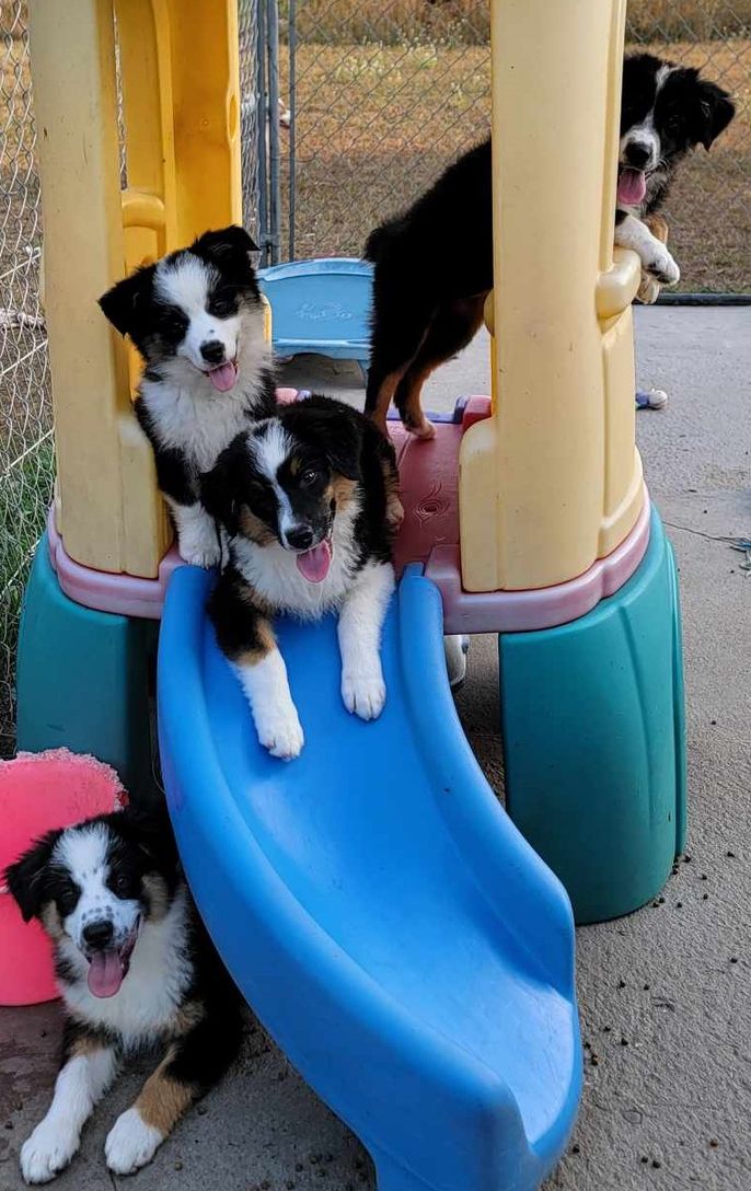 Our puppies include red merle, blue merle, black tri-color, and red tri-color. Colors will vary depending on the parent dogs.