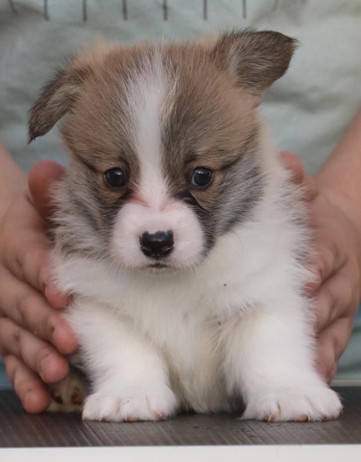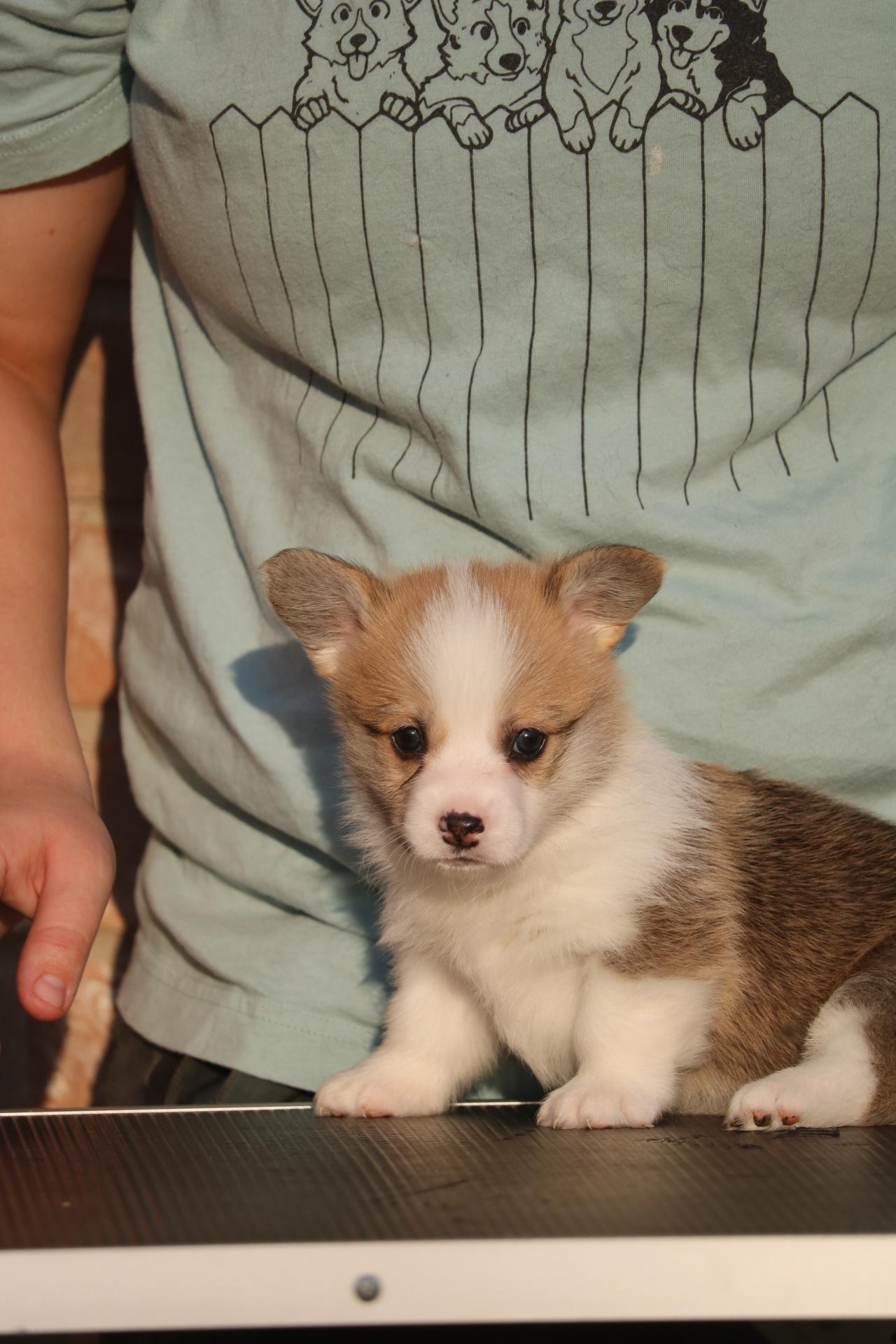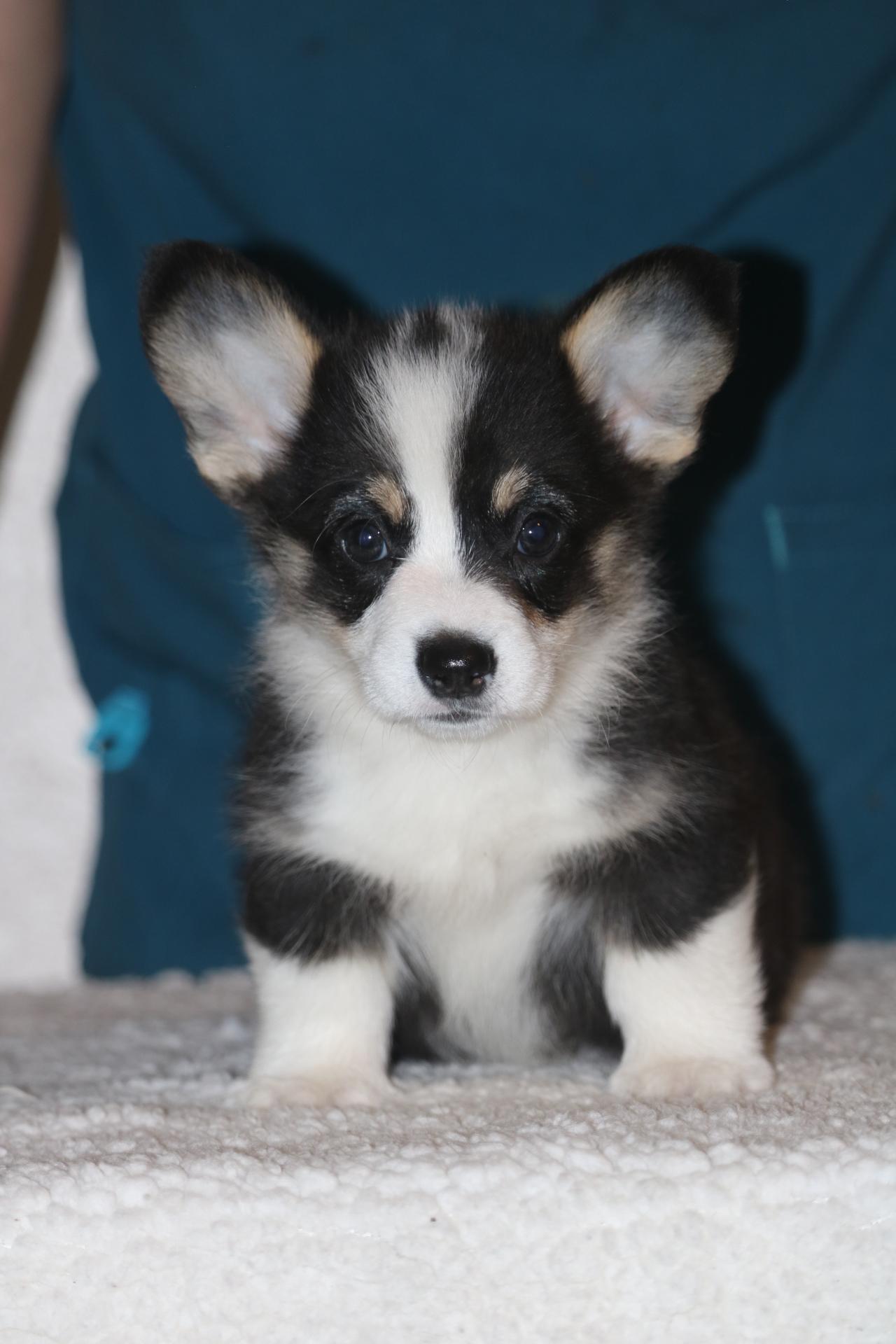Our Cardigan Welsh Corgi puppies include brindle and white, black and white, and blue merle and white. Pembroke Welsh Corgi puppies include fawn, red, and sable. Colors will vary depending on the parent dogs.