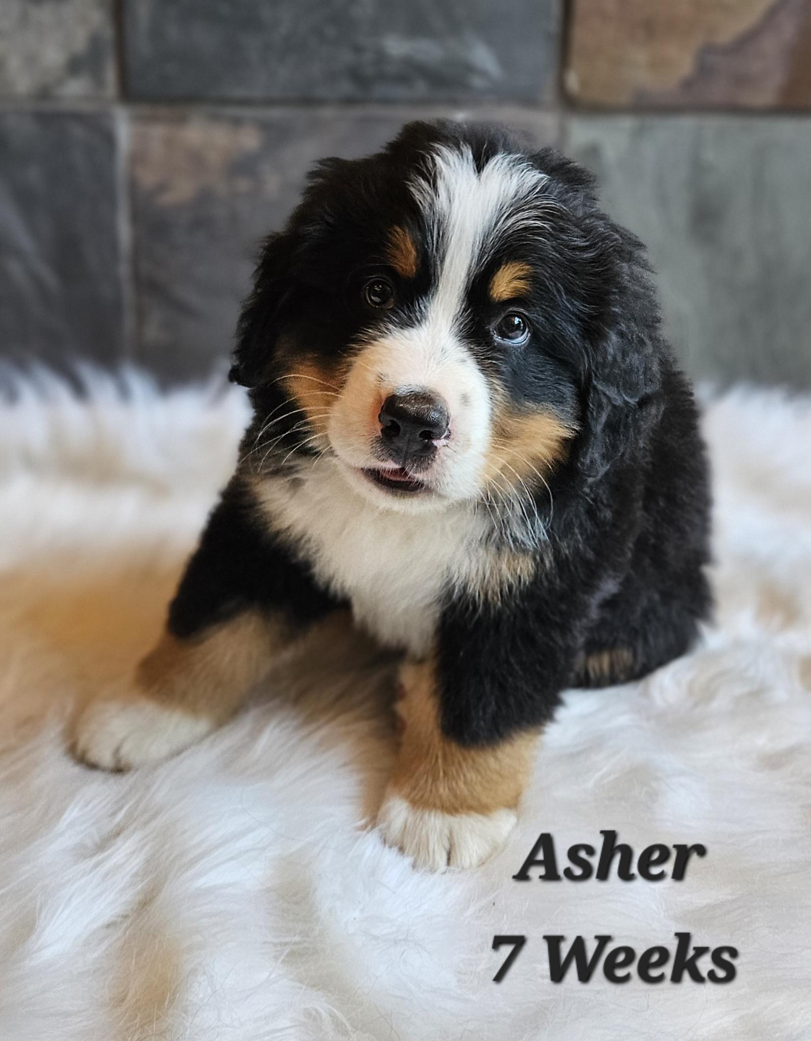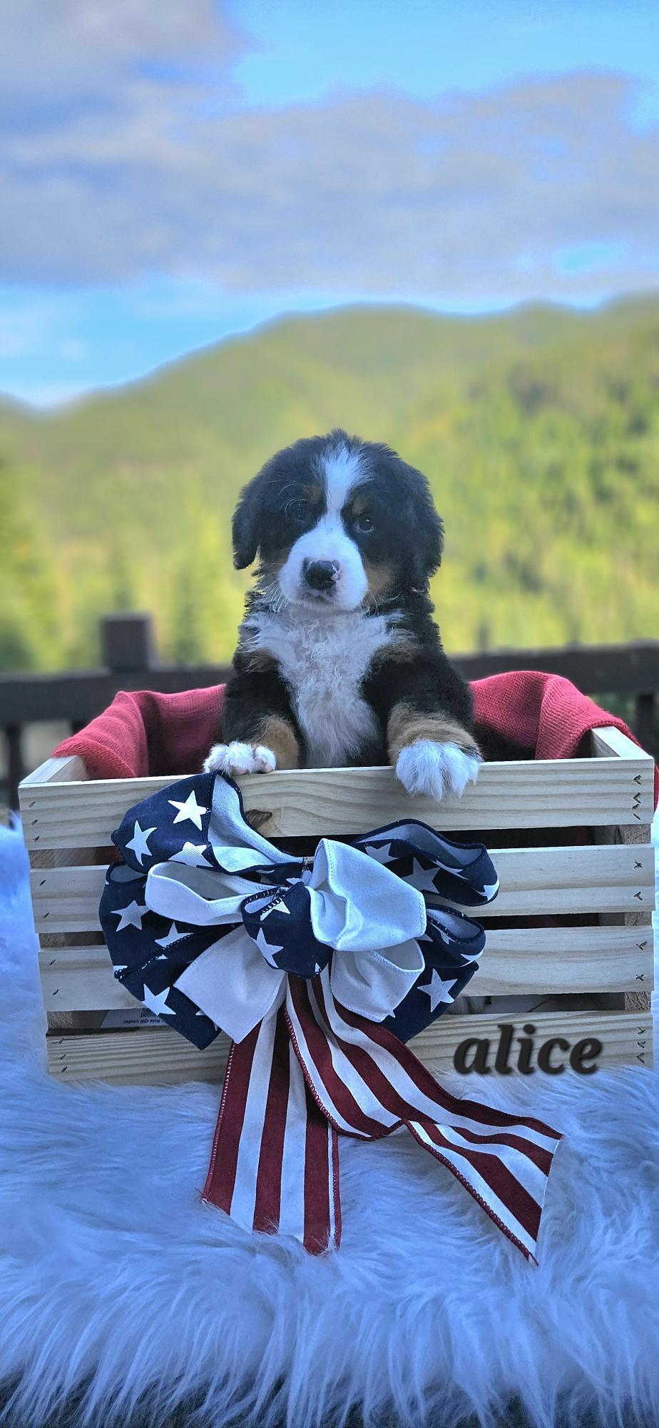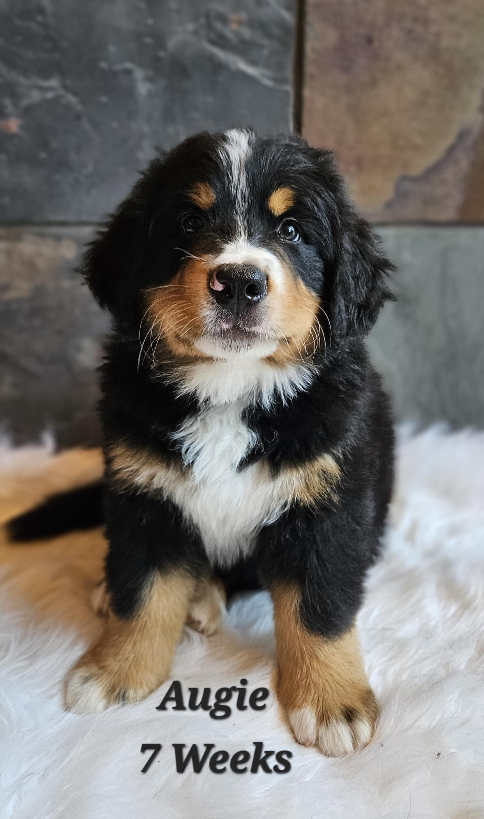 Henry is one of the most loving, gentle natured Berners around. He loves walks and hikes, and anything involving his owners. He is happiest snuggling with his owners with his head tucked under our elbow. He is very intelligent and a quick learner with a calm and patient demeanor. He comes from Champion bloodlines and is AKC registered with all recommended health clearances.