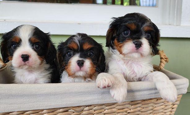 Our puppies include blenheim and tri-color. Colors will vary depending on the parent dogs.