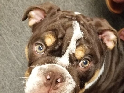 Stalker is a male Bulldog. Carefully selected as a great representative of his breed, Matthew and Angela decided to make him part of their program. Matthew and Angela has passed Good Dog’s screening process, which involved a review of their breeding practices, environment, and the mental and physical health of their dogs.