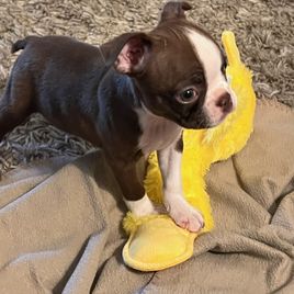 Deanna was very knowledgeable about this breed. She was responsive and sent regular pictures. She made the process of adopting Noelle so easy. I recommend Deanna and Boston Terriers to anyone looking for a wonderful companion and/or family dog.