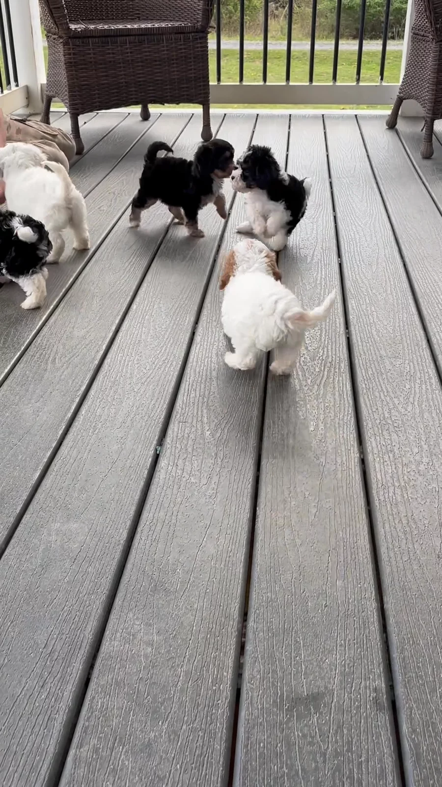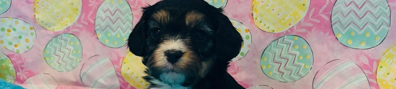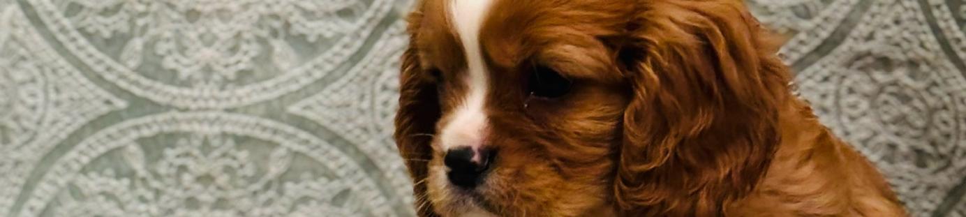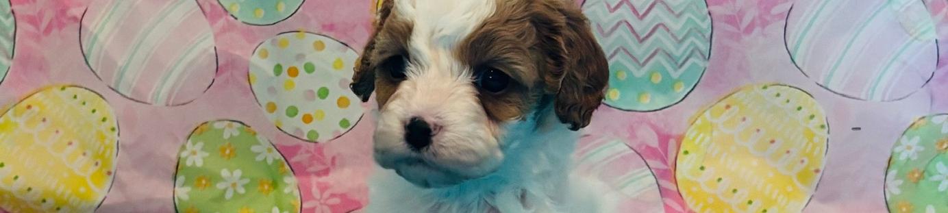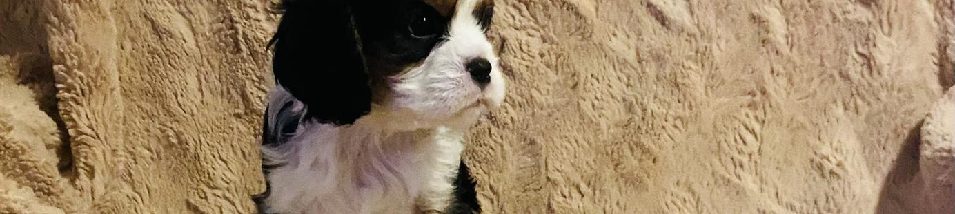 Our Cavalier King Charles Spaniel puppies include blenheim, ruby, tri-color, and black and tan. Cavapoo puppies include tri-color, apricot, blenheim, and black and tan. Colors will vary depending on the parent dogs.