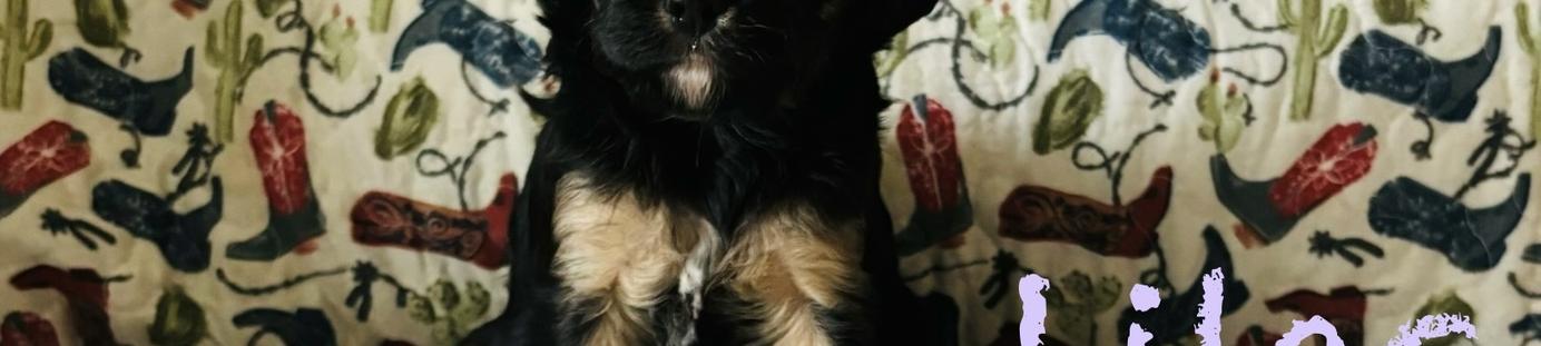 Odie is our lovable, energetic black and tan phantom poodle. At only 8 pounds. He is the perfect size to cuddle up with you on the couch. His favorite things to do are go to livestock shows and run around the farm. His happy-go-lucky and sweet personality is passed on to all of his pups.