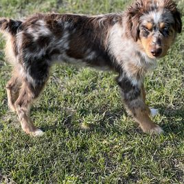 I want to thank Cindy and her husband for doing such an amazing job of taking care of the pups! From the beginning Cindy did a great job communicating how the pups were progressing. The little updates, pictures, and videos were VERY appreciated. Cindy was always quick to respond and very helpful answering any questions. Since I’ve picked up the puppy potty training, leash training, and socializing has been easy. I would certainly recommend any responsible person that wants an Aussie to go through Cindy